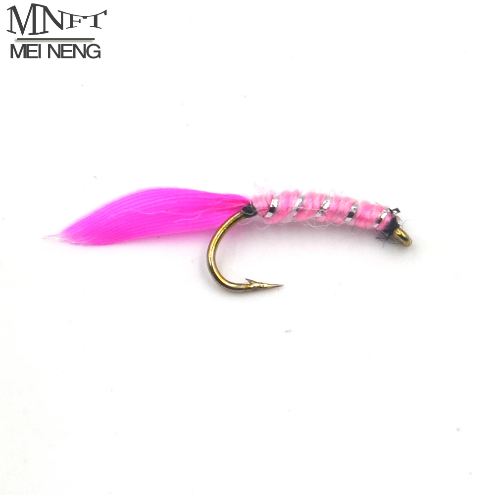 MNFT 10 unids/set 12 # Rosa pluma roja plata cebra patrón mosca seca pesca moscas anzuelo ninfa señuelos Mayfly cebos