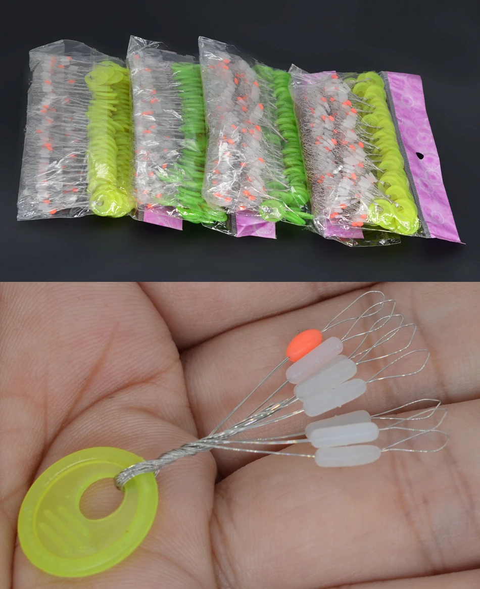 MNFT 100 juegos/800 Uds tapón de corcho de pesca 7 en 1 topes de plomo flotantes transparentes de silicona suave, tapón de cilindro de goma