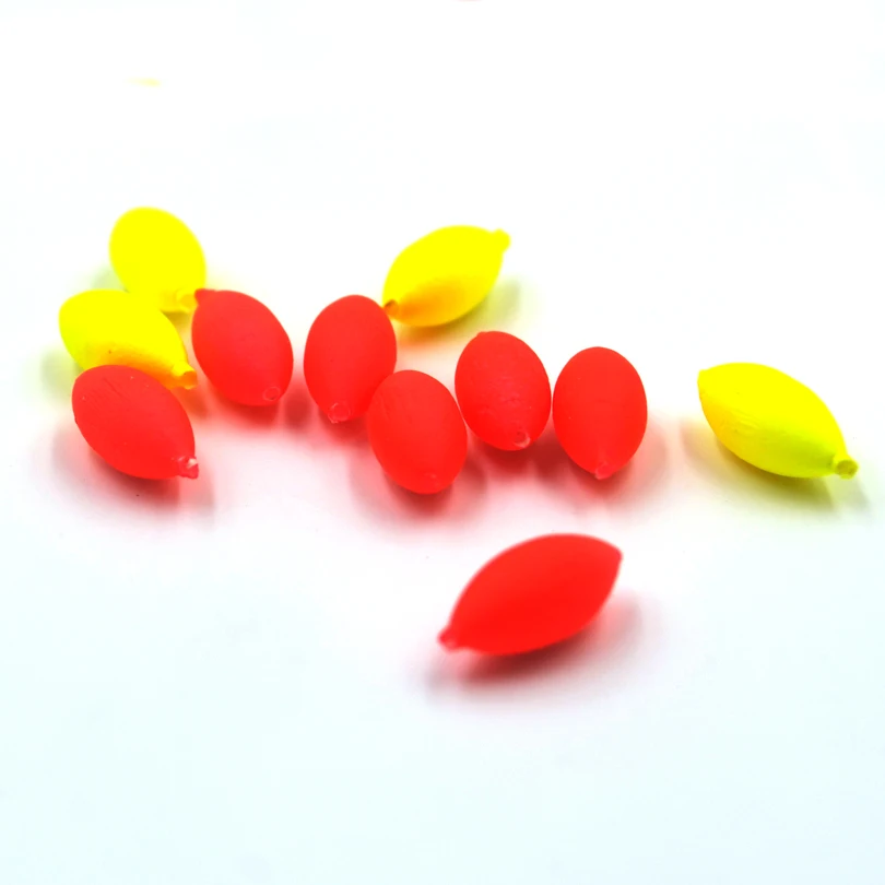 MNFT 100 Uds Mini flotador de pesca ovalado Bobber Rig hacer frijoles flotantes de pesca cuentas llamativas rojas/amarillas con agujero sin tapón 3 4 #