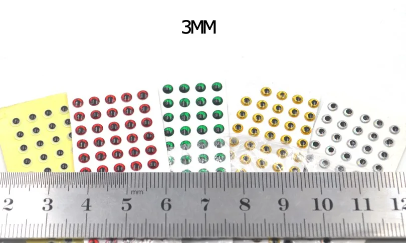 MNFT 100 unids/lote 3mm 4mm 5mm 3D señuelo de pesca holográfico atado de moscas, fabricación de cebos de señuelo con colores dorados, plateados, rojos, blancos y verdes