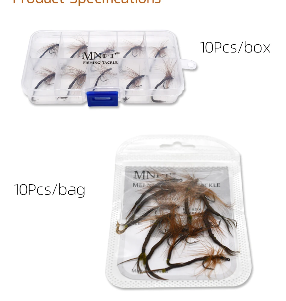 MNFT 10PCS 12 # Color marrón Adams, pesca de trucha con mosca de cuerpo extendido moscas secas cebo para peces Caddis Midge adulto Mayfly