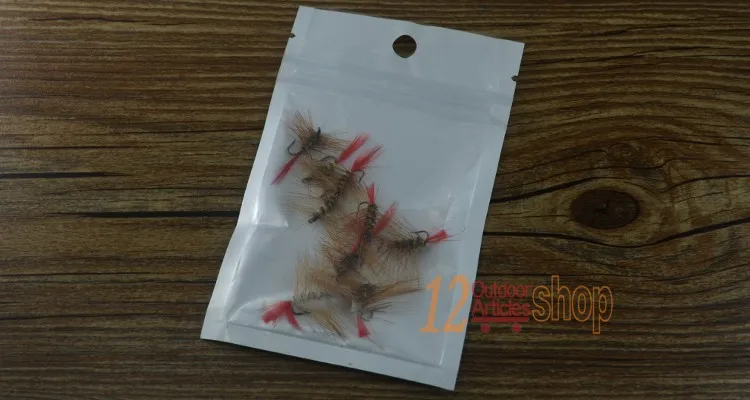 MNFT 10PCS 12 # Marrón Emeger ninfa trucha moscas pesca con mosca señuelo Bugger gusano de lana mosca cebo caja bolsa paquete para opción