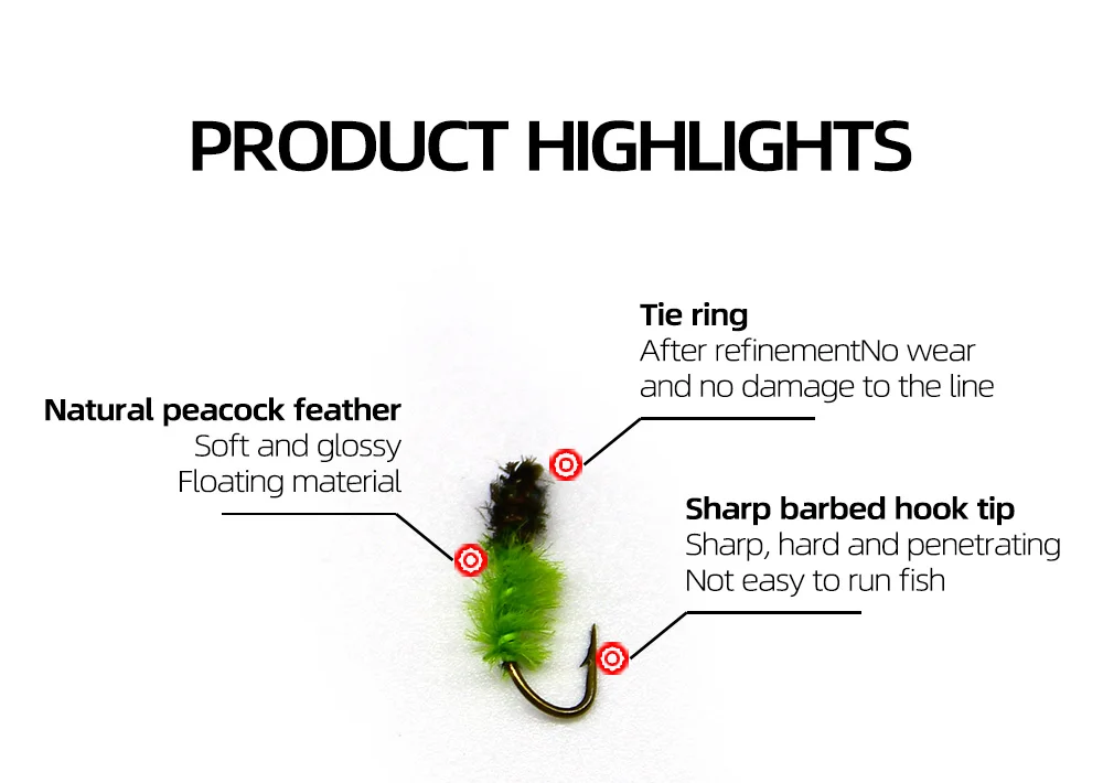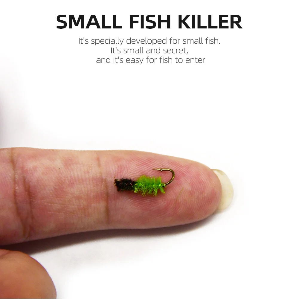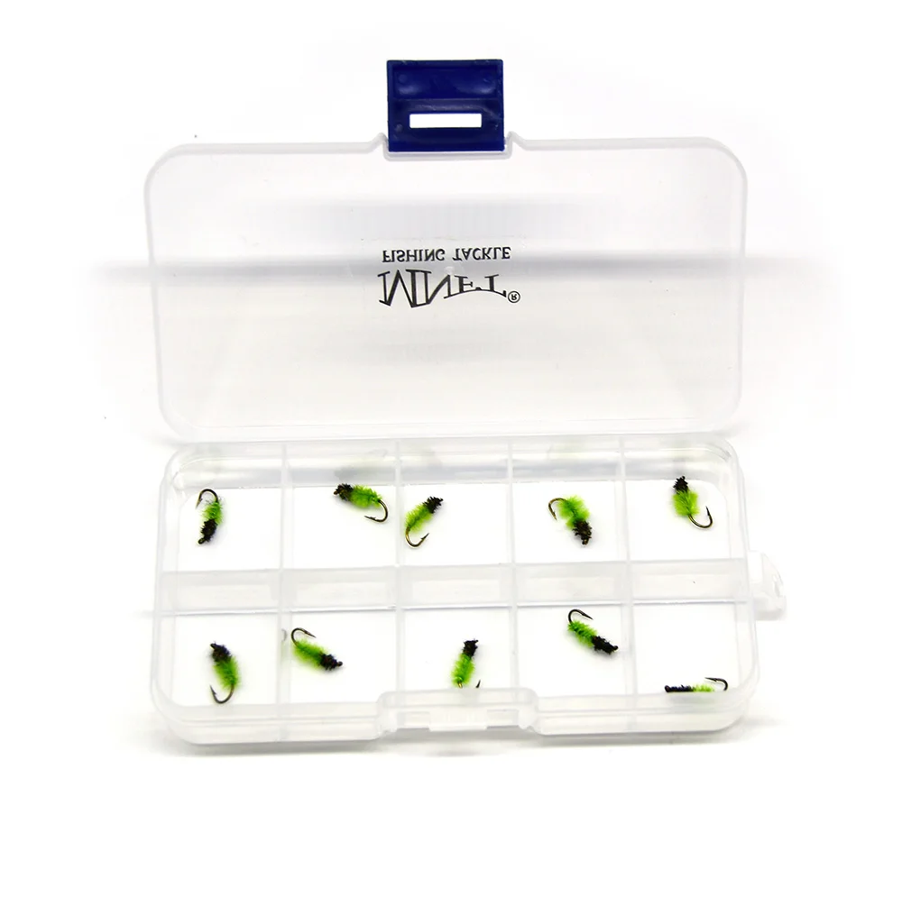 MNFT 10PCS # 12 señuelos de pesca de trucha con moscas de ninfas Midge de oruga verde