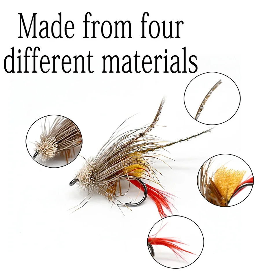 MNFT 10PCS 6 # Pesca con mosca, tolva de hierba, moscas terrestre, huevo amarillo seco dentro de la barba marrón, moscas de pavo real
