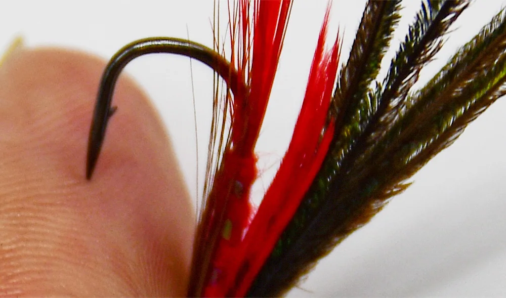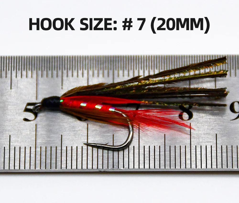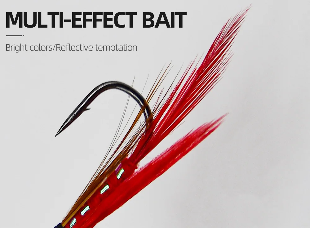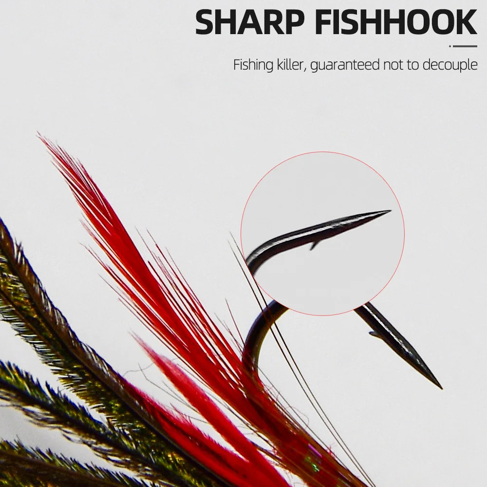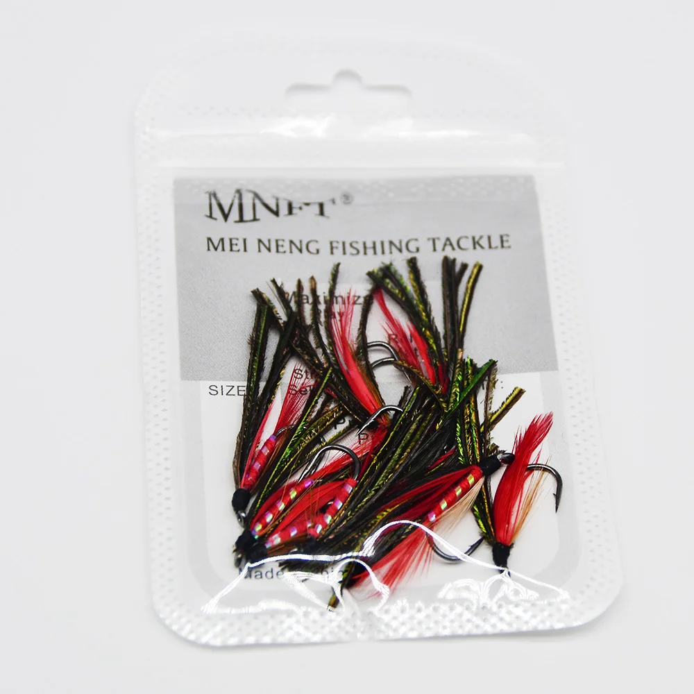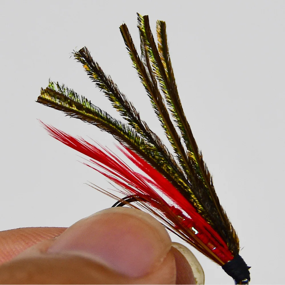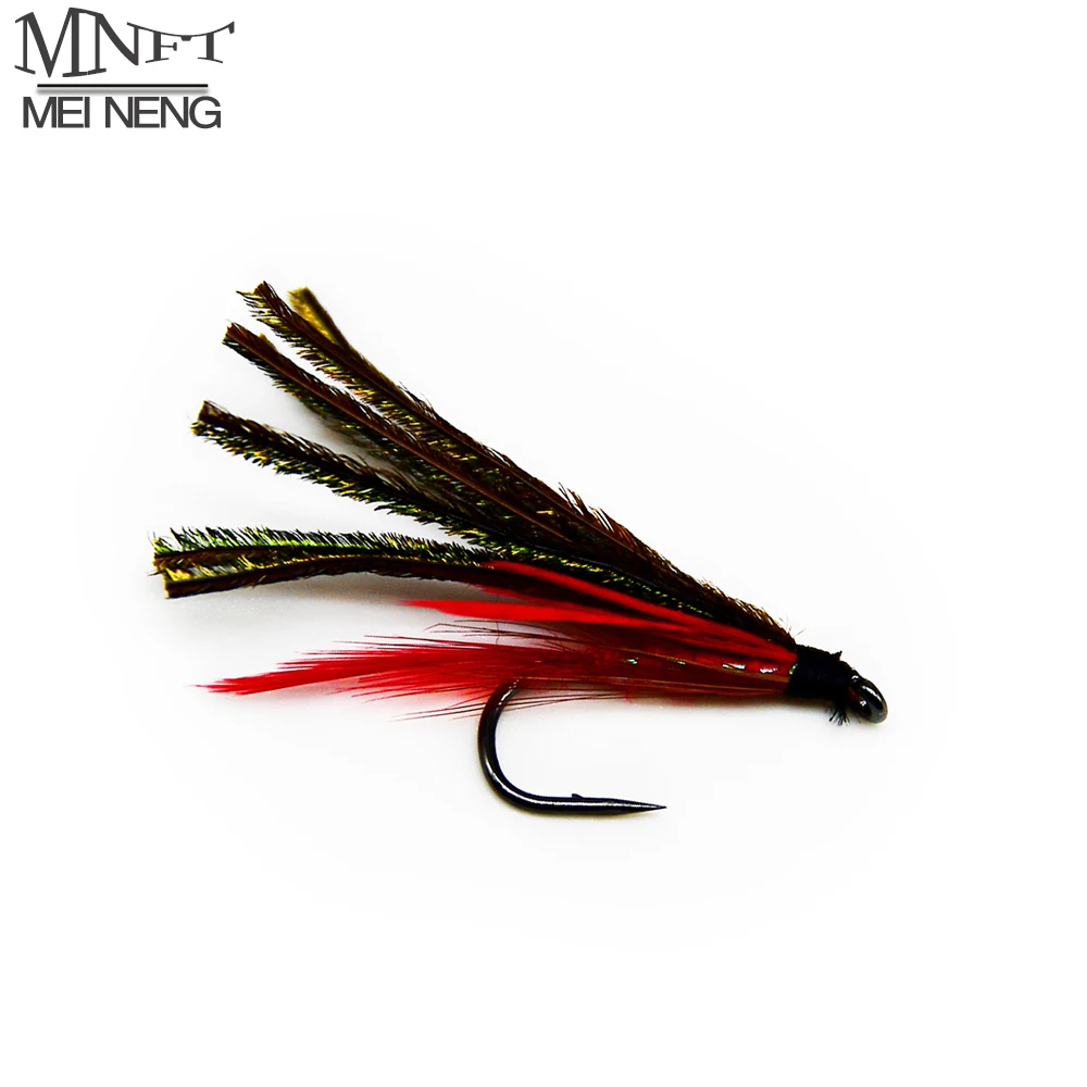 MNFT 10PCS 7 # Cebos artificiales con serpentina de demonio de pavo real rojo, moscas de trucha, anzuelos de púas, señuelo de pesca