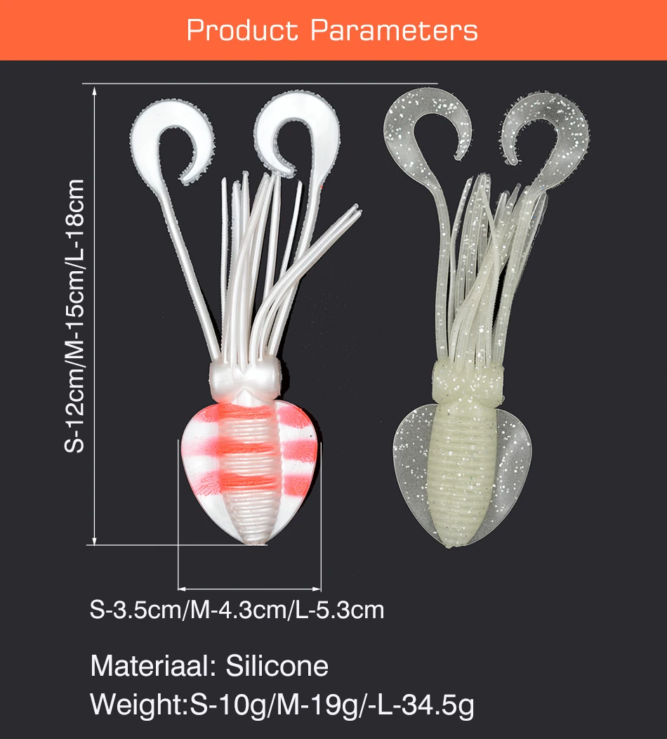 Características:Elaborado con vinilo resistente, resiste el abuso de esas especies de monstruos dientes y feroz en el mar.Estilo realista, con ojos 3D personalizados, piel y falda verde leche, parece casi un calamar real nadando bajo el agua, mostrando su cuerpo luminoso para lograr todo el foco de otros peces, incluidos aquellos grandes que están ansiosos por un gran medio, por supuesto.Especificaciones:Merk: MNFTTipo: Señuelo blandoMaterial: SiliconaPeso: S-10 g/M-19 g/-L-34,5 gLongitud: S-12 cm/M-15 cm/L-18 cmCantidad:1 unidad * señuelo de pescaAbultando:1.Permita un error de 1-3 mm debido a la medición manual.Por favor, asegúrese de que no le importe su oferta.2.Debido a la diferencia entre diferentes monitores, es posible que la imagen no refleje el color real del artículo.Gracias por comprar
