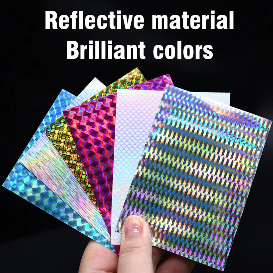 MNFT 12 Uds DIY cebo duro lentejuelas señuelo holográfico pegatina de piel de pescado autoadhesivo Arco Iris cambio de Color película atado de moscas Material