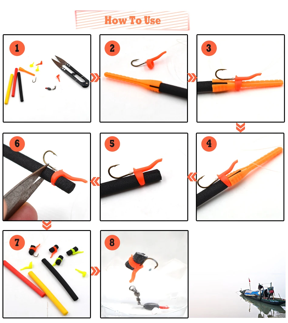 Características: Esta es una espuma suave pero duradera que se puede arrastrar y reutilizar una y otra vez. Esto también es perfecto para inclinar su plataforma para Una llamativa mancha de color que ha ayudado a los pescadores de todo el mundo a atraparlos con cautela carpa. Se utiliza para conectar el sedal y el anzuelo. Simplemente enhebrar en su línea principal, atar en el gancho. Estas mangas son brillantes, para sujetar un poco o espuma más fácilmente. El bucle agarra la espuma firmemente, no se desprenderá. La funda de anzuelo de pesca única hace que el cebo de anzuelo cambie o intercambie muy rápidamente. Especificaciones: Material: Espuma EVA/silicona/plástico Color: rojo, amarillo, negro Longitud: barras de espuma/70*6mm Herramientas de espuma/37*7mm Alineadores Zig/14*6mm El paquete incluye: 12 unidades/paquete Los paquetes mixtos incluyen: 5 palos de espuma de 2/2 ". Alineadores Zig de 5 ", 2 herramientas de espuma,