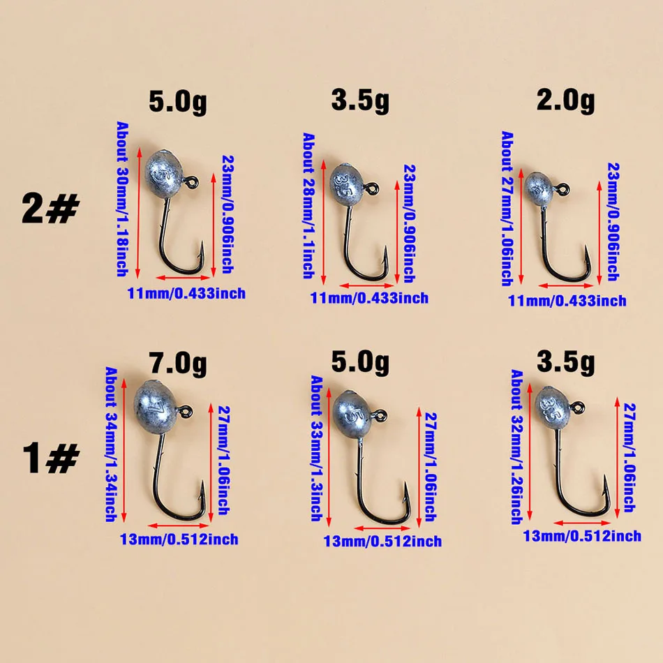 MNFT 12 unids/caja anzuelo Mustad con forma de huevo 2g 3,5g 5g 7g cabeza de plomo doble púas anzuelo para pesca en agua salada y agua dulce
