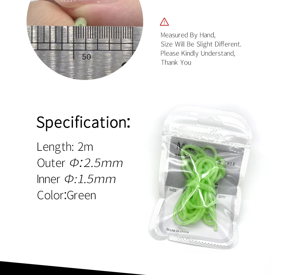 Brilla en la oscuridadTamaño del tubo:Exterior Φ:2,5 mm-Interior Φ:1,5 mmlongitud:2M