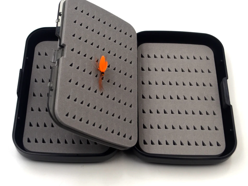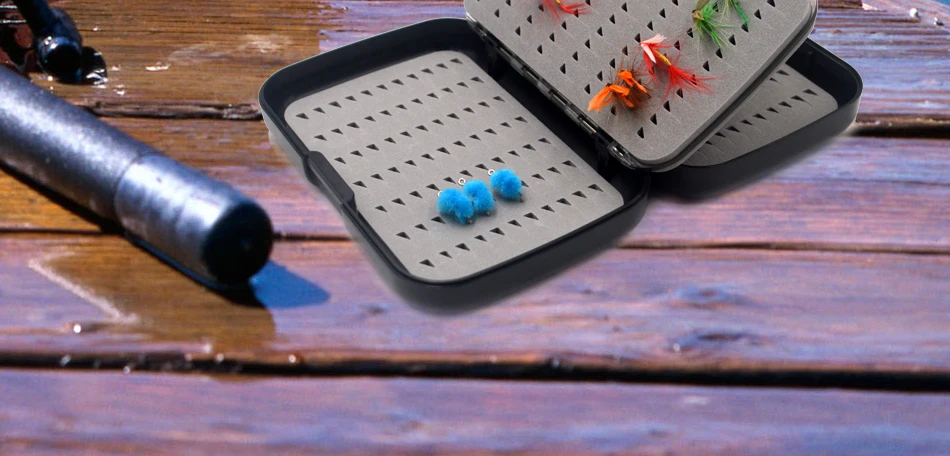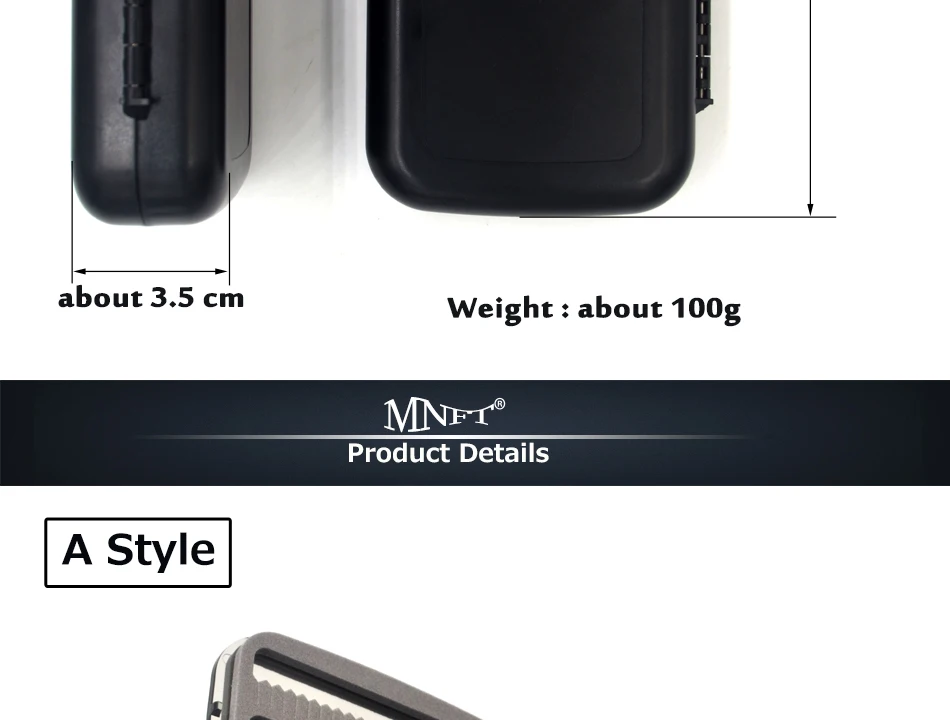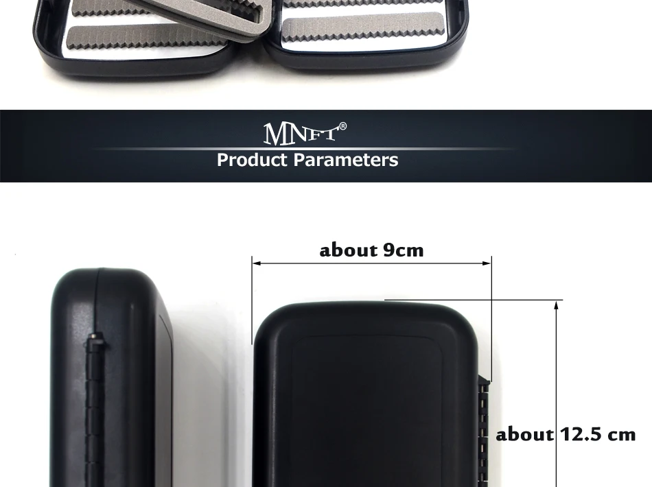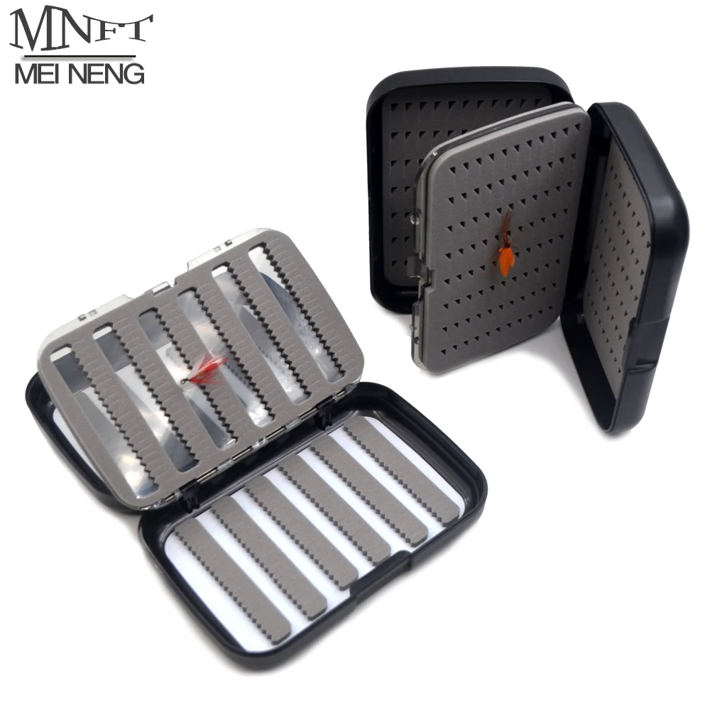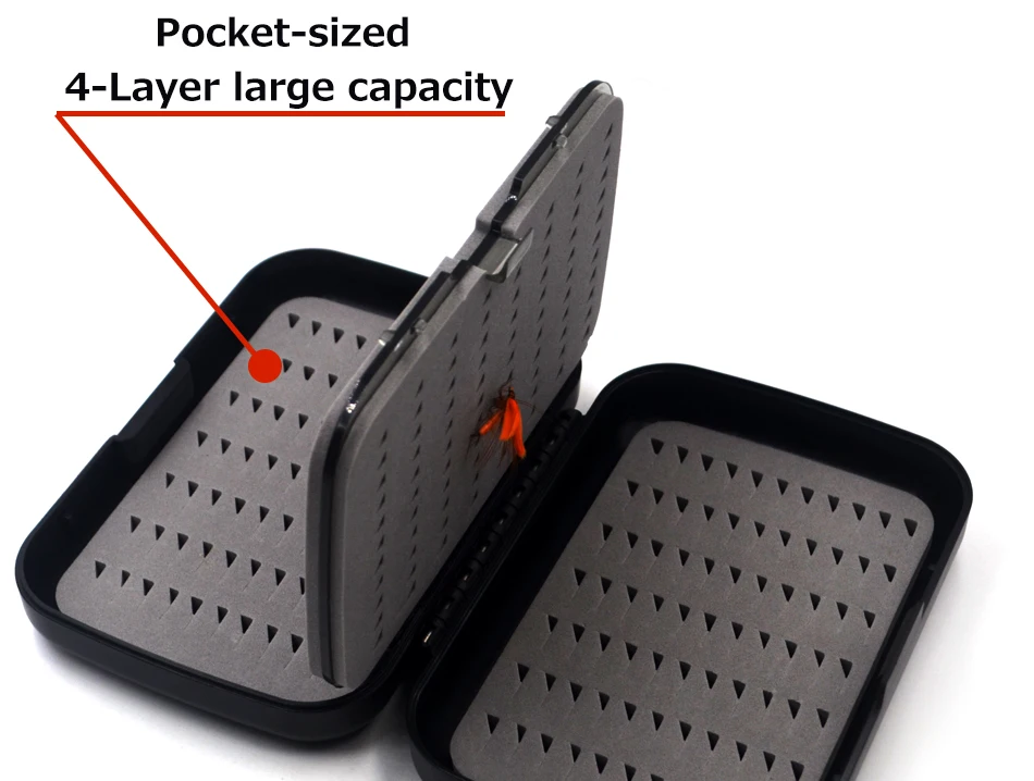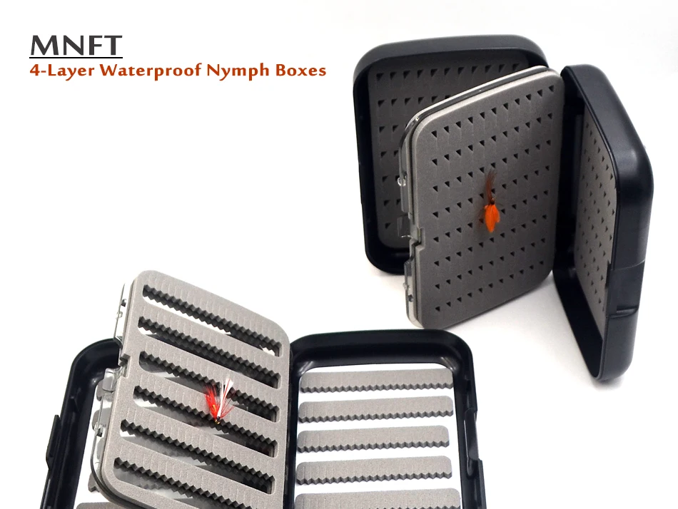 MNFT 2 uds cajas de pesca de ninfa impermeables de 4 capas de tamaño de bolsillo caja de almacenamiento de señuelos de plástico negro caja de pesca con mosca de espuma con hendidura