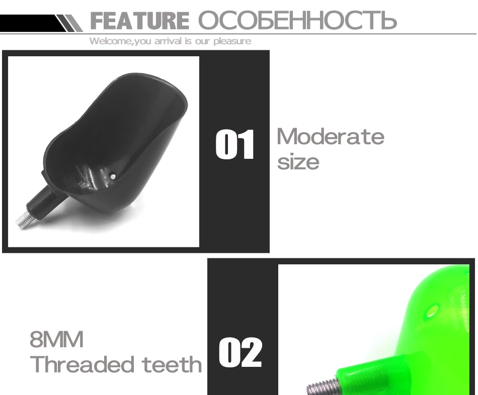 MNFT 2 uds cuchara para lanzar cebo para alimentar partículas pesca Boilie cuchara herramienta de cebo de pesca negro y verde