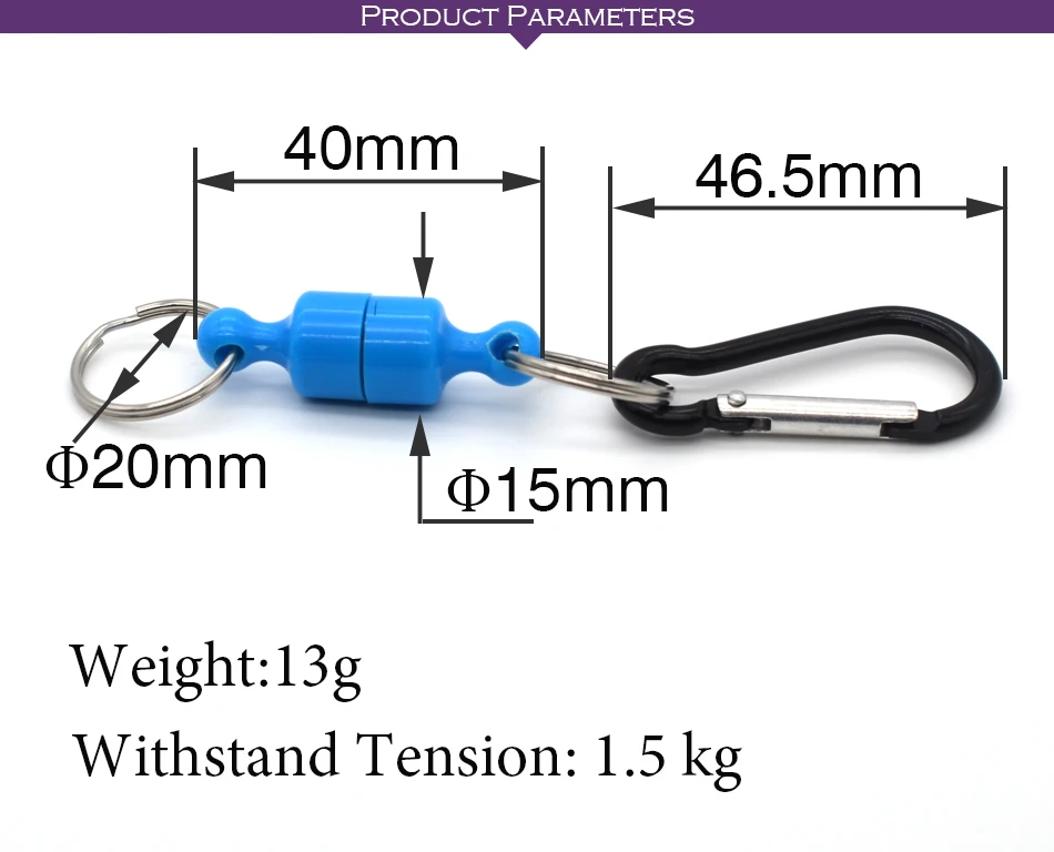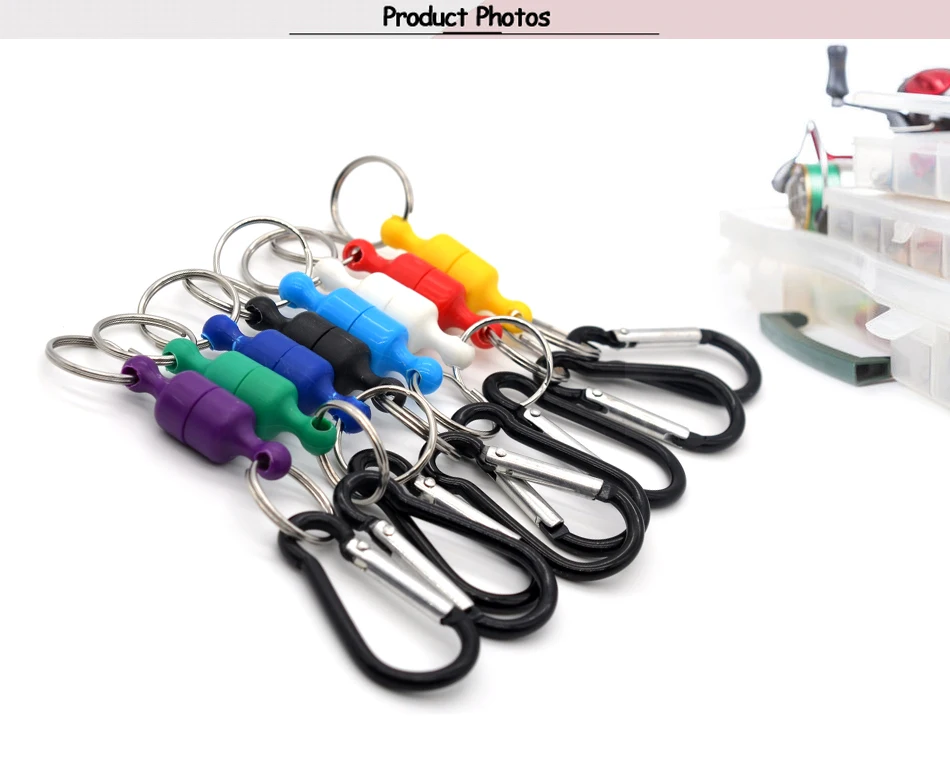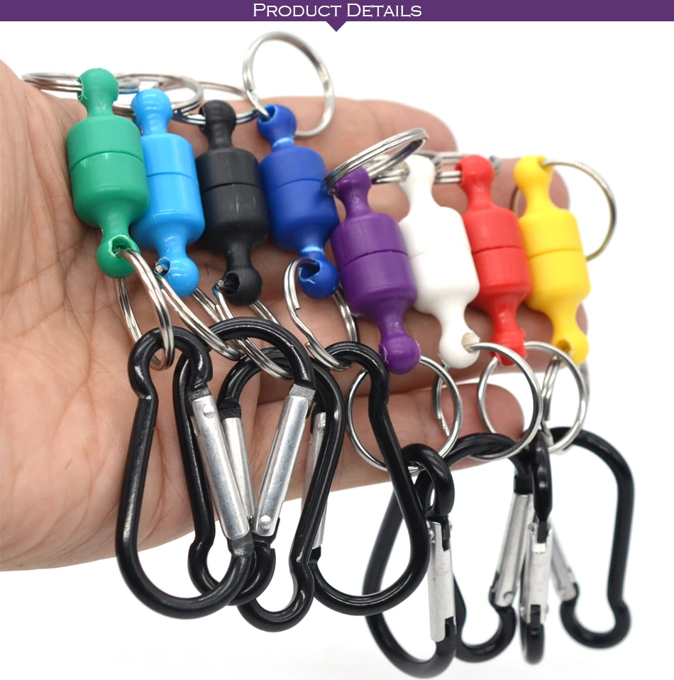 MNFT 2 uds hebilla magnética pesca con mosca red magnética y mosquetón de aluminio herramienta de liberación rápida de pesca 8 colores seleccionados