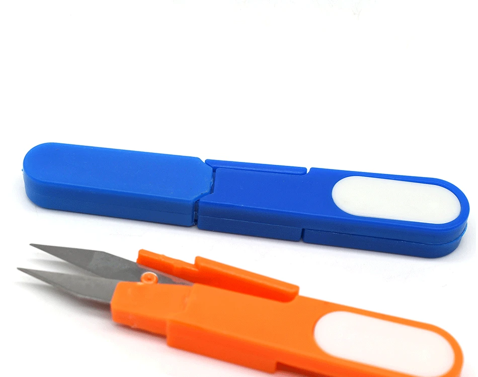 MNFT 2 uds tijeras pequeñas con tapa tijeras para sedal mango de plástico multicolor cortador en forma de U portátil