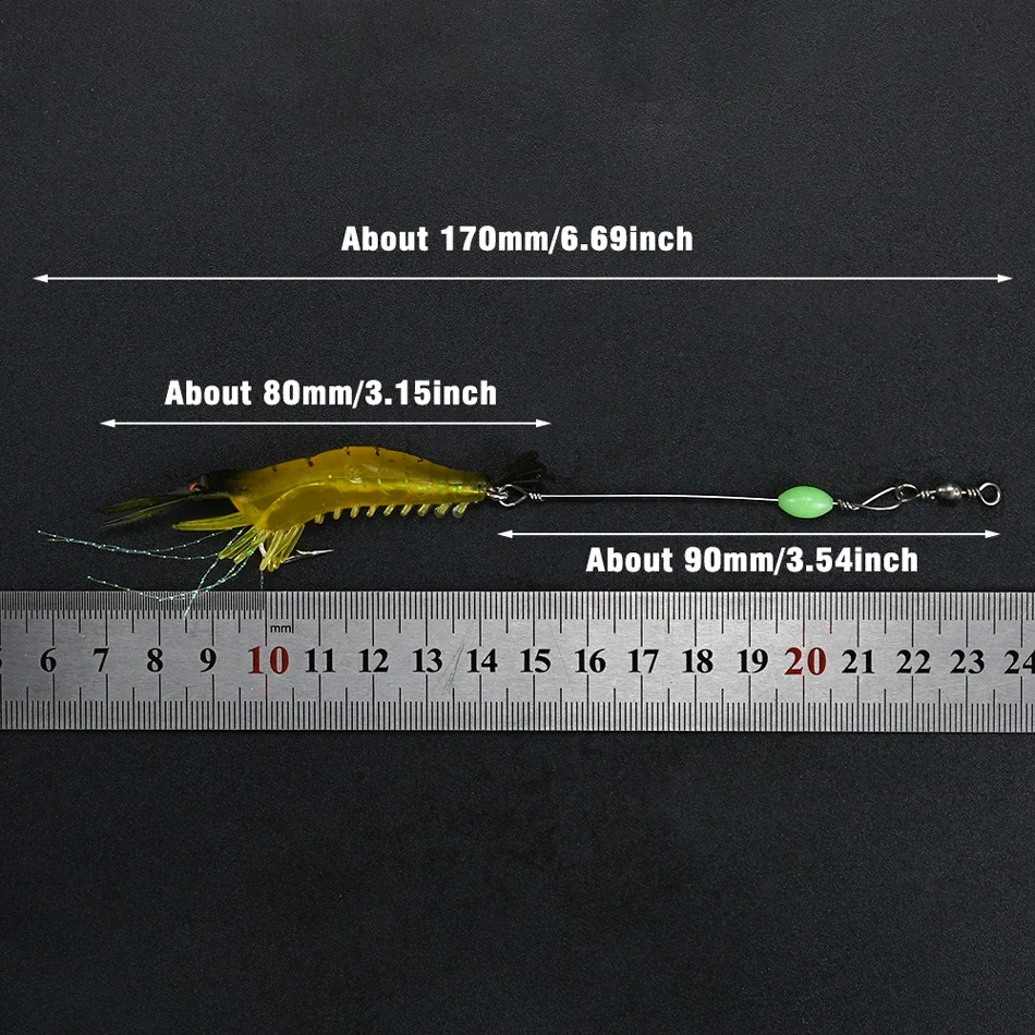 Descripción del producto:Temporada: invierno, otoño, verano, primavera, todas las estaciones.Material: plásticoActividad: PescaMétodo de pesca: pesca en el mar, pesca en agua dulce, lanzamiento de ceboTipo de señuelo de pesca: cebo blandoPeso: alrededor de 6 gLongitud: 10 cmLos ojos de los camarones son noctilucentes. Fácil de usar, incluso para los estudiantes de primer año.Componentes incluidos:2 unidades/caja