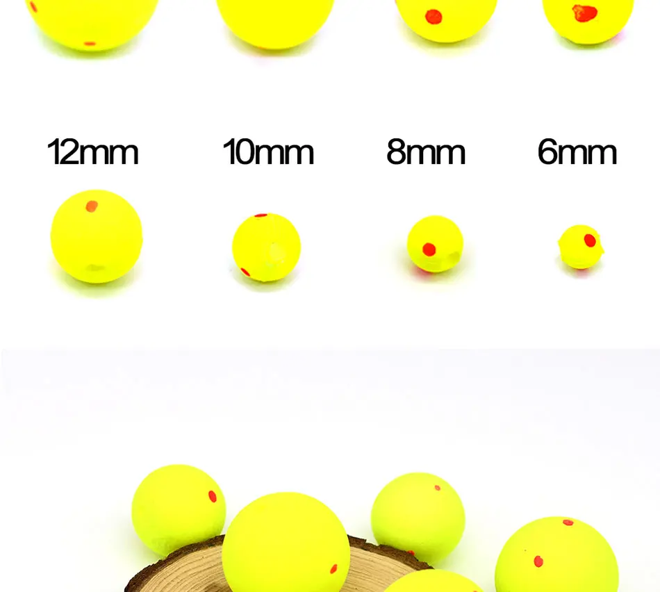 Descripción del productoMaterial: Espuma de alta calidadColor: amarillo y rojoDiámetro: 30mm,25mm,20mm,15mm,12mm,10mm,8mm,6mmEmbalaje: 20 piezas/bolsaMezcla de 24 piezas=cada tamaño 3 piezas, un total de 8 tamaños