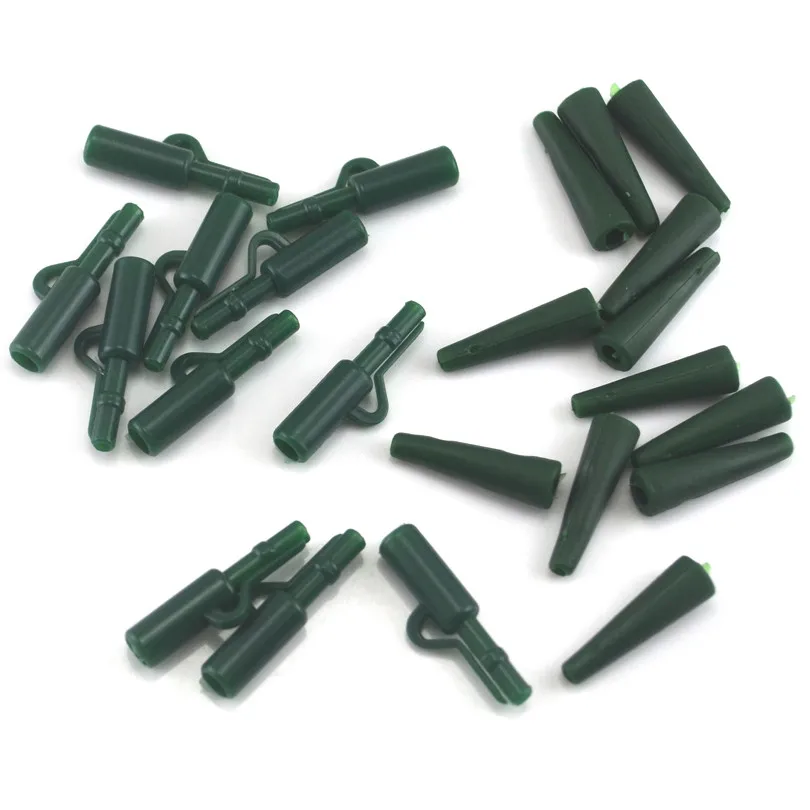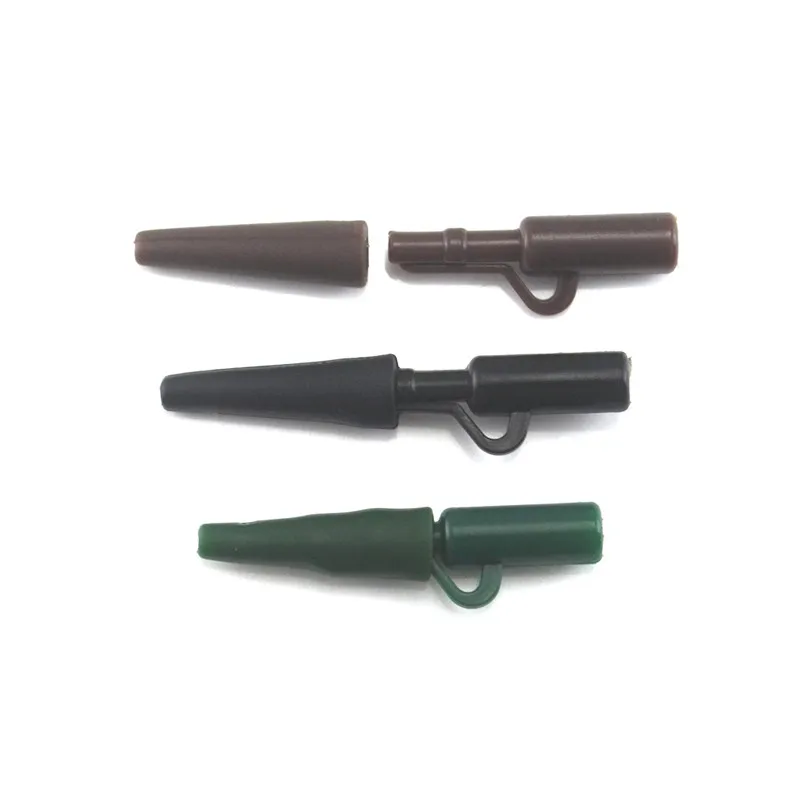 MNFT 24 juegos de sistema de Clips de plomo de seguridad de plástico para pesca de carpa con gomas suaves aparejo de Terminal de cola Color negro verde marrón