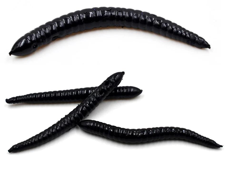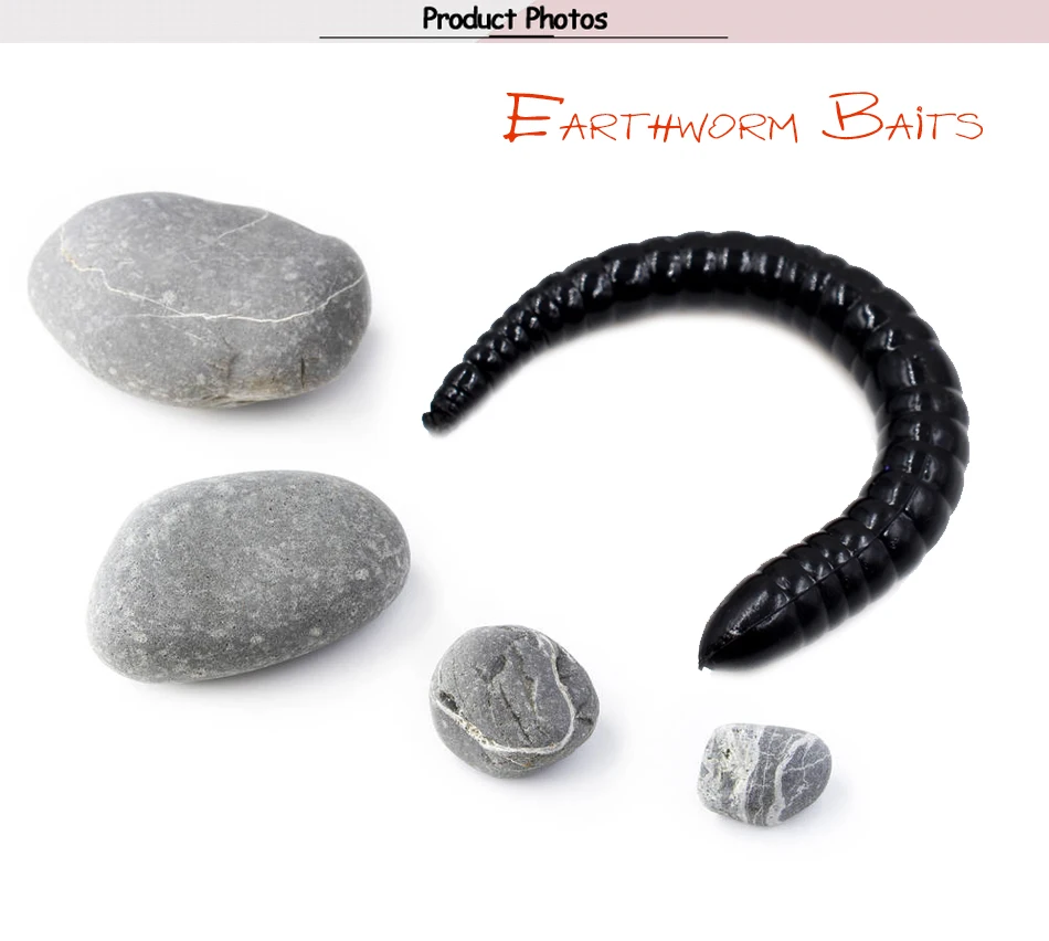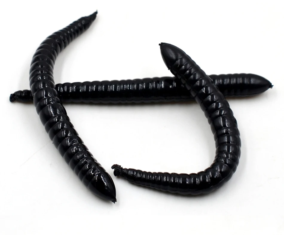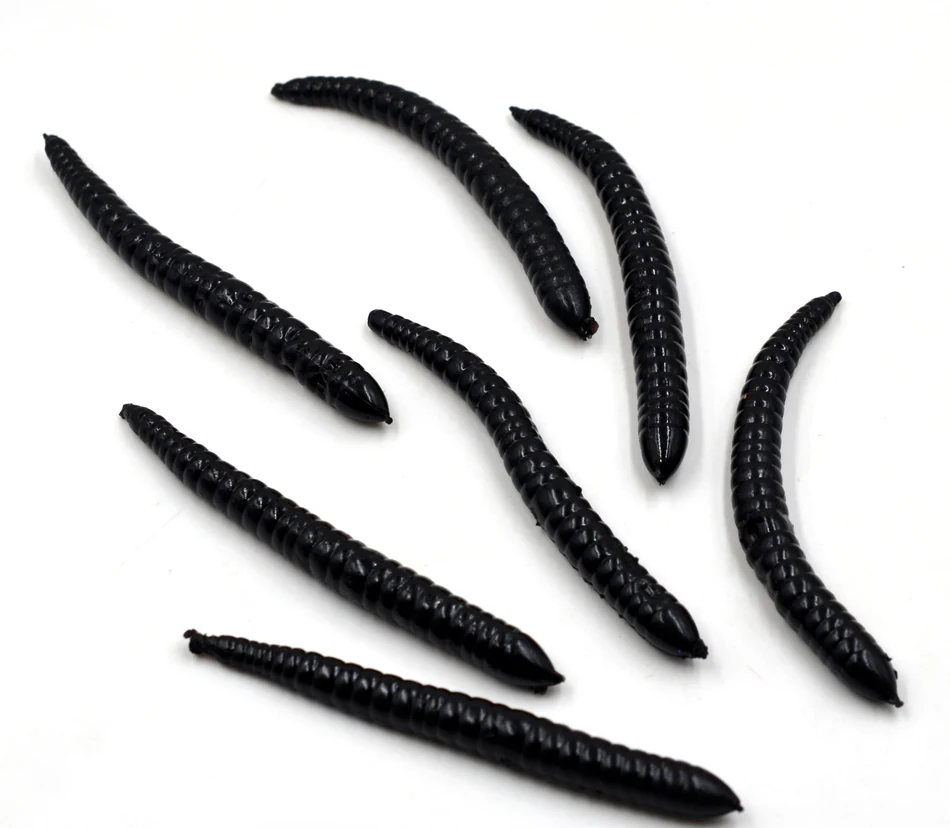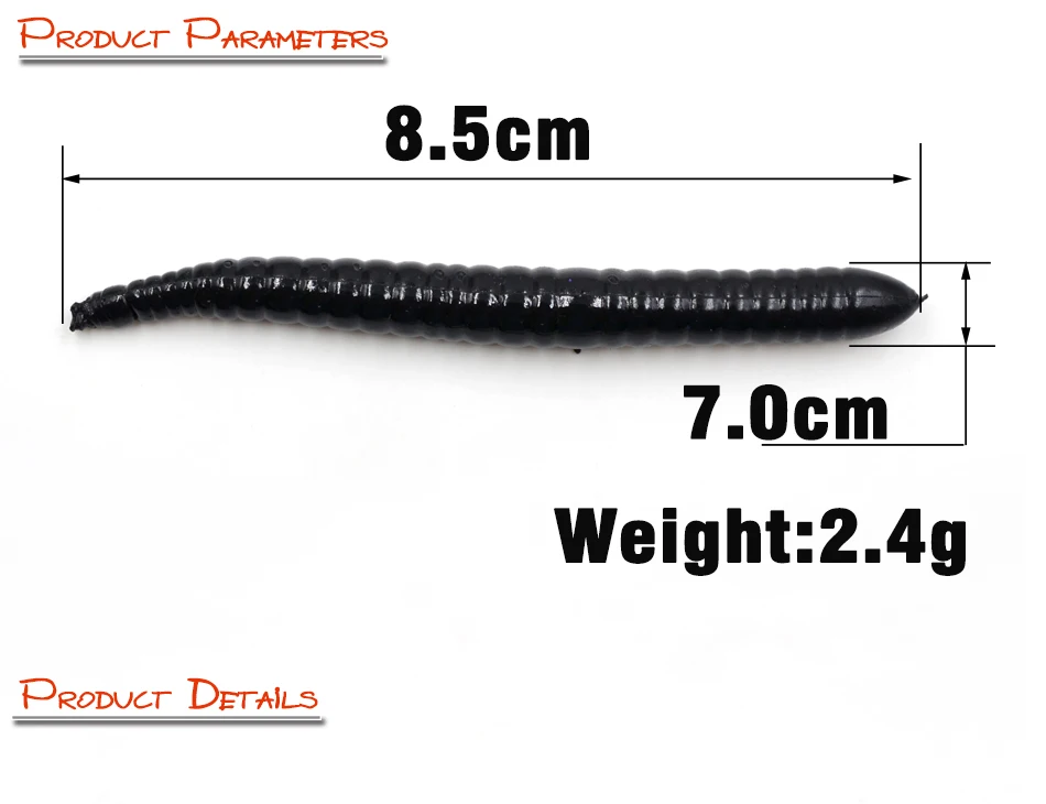 MNFT-24 piezas de simulación de lombriz de tierra, gusanos de pesca de bronce negro, señuelos de gusanos de pesca artificiales, cebo blando de 8cm, aparejos de pesca