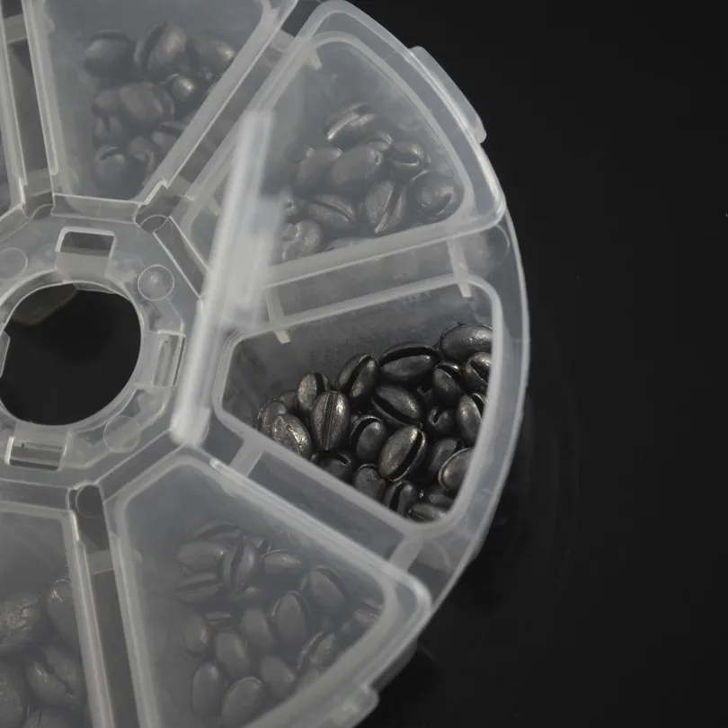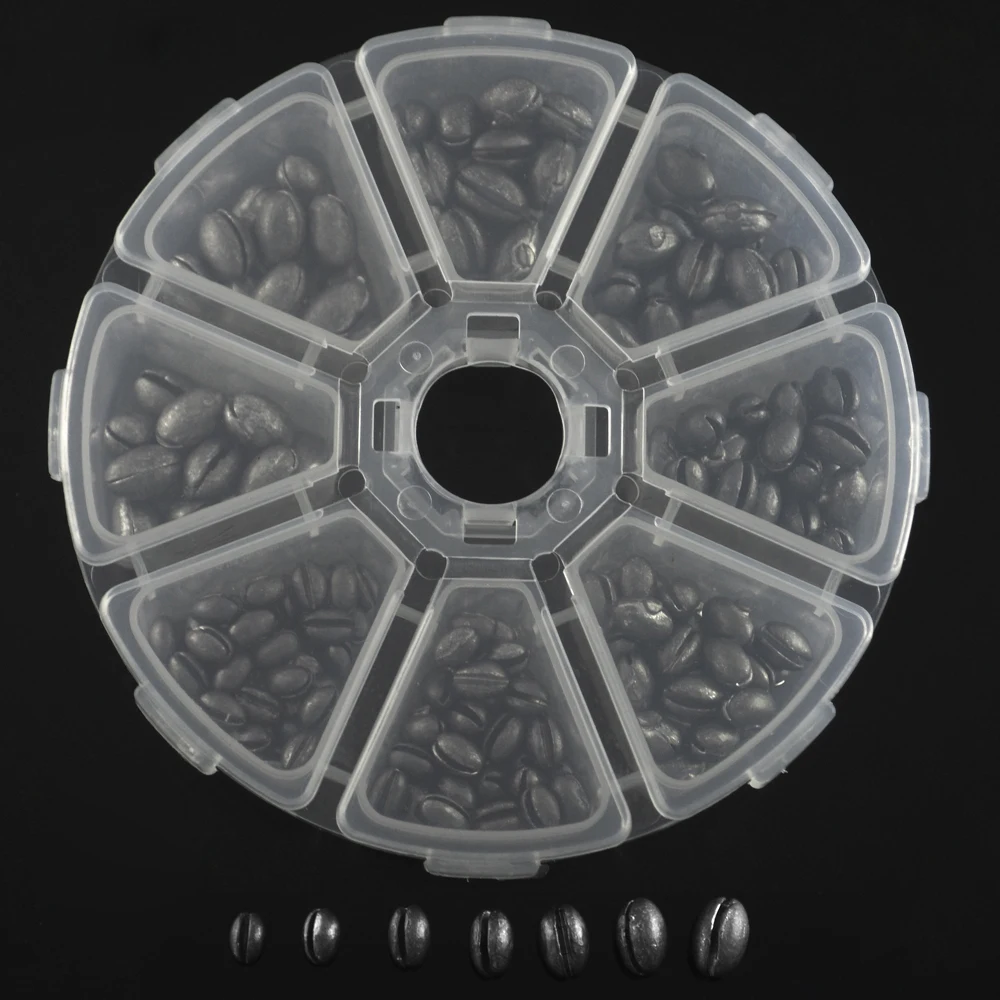 MNFT 246 Uds 1B a 7B buena calidad Oval Split Shot plomo pesca peso Combo con caja para abrir Clip de plomo no daña la línea