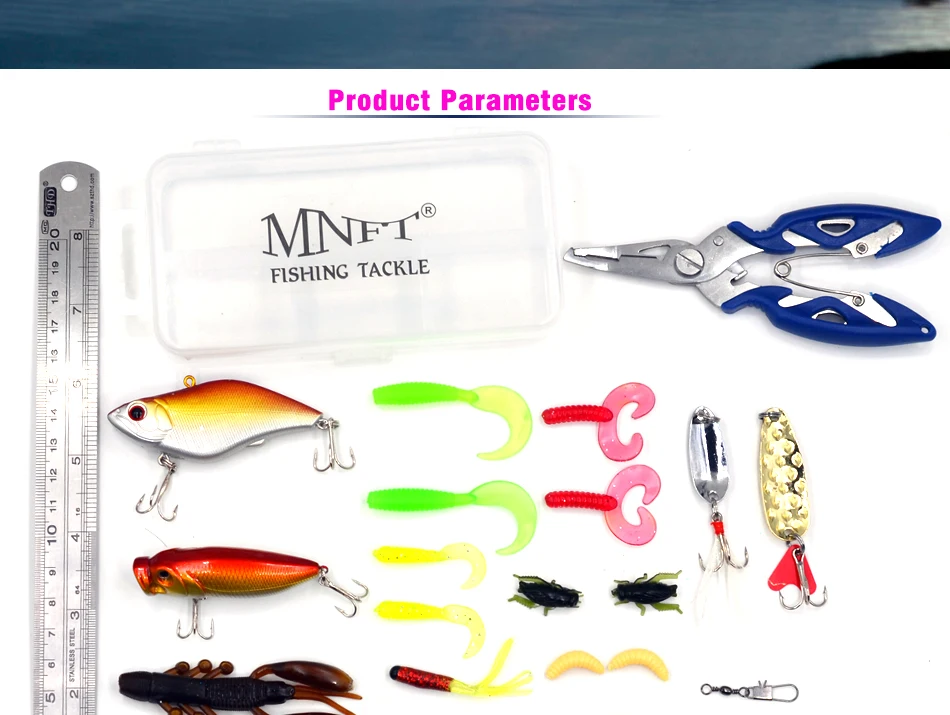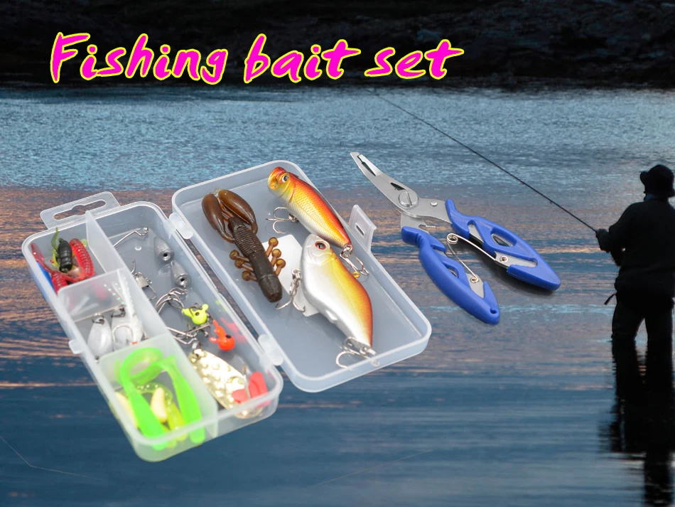 MNFT 29 unids/lote anzuelos con cabeza de plomo aparejos de simulación juego de Señuelos de Pesca gusano mixto Minnow Piler Kit de Señuelos blandos equipo de pesca
