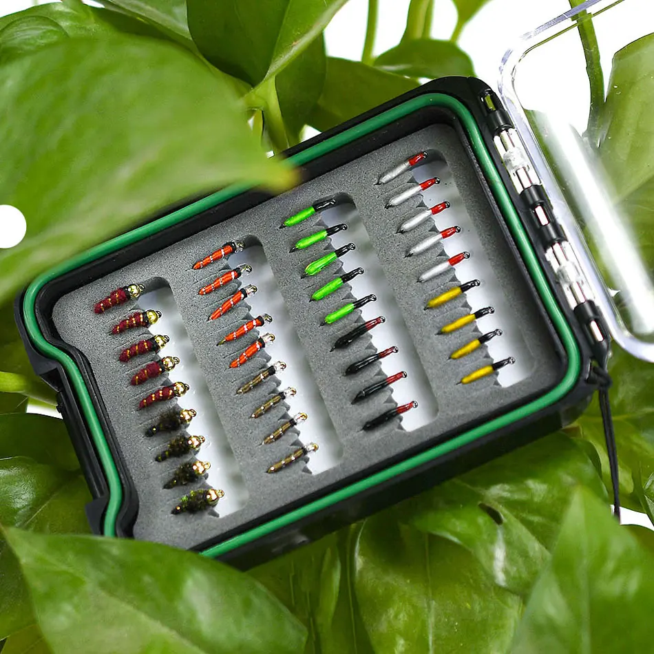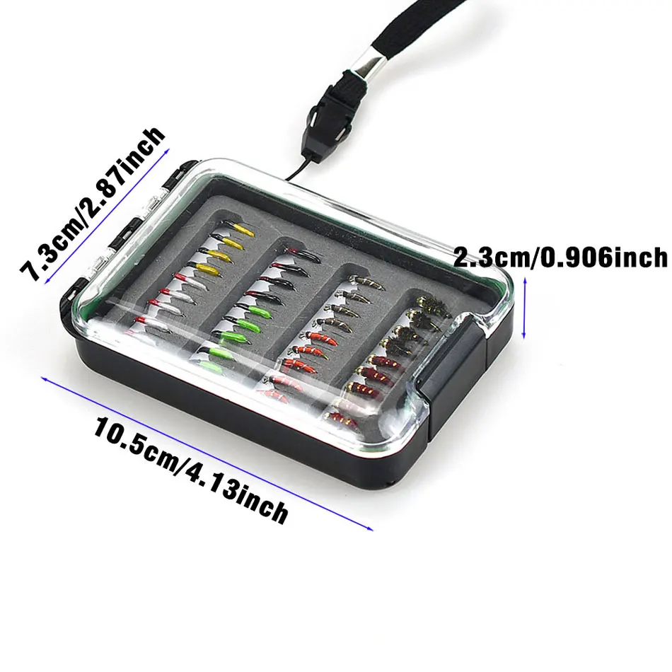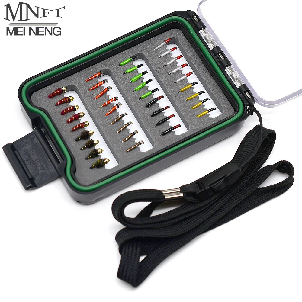 MNFT 36 unids/caja colección de moscas de pesca de trucha serpentinas de ninfa húmeda seca Perdigon Euro surtido de moscas con caja señuelos de pesca con mosca