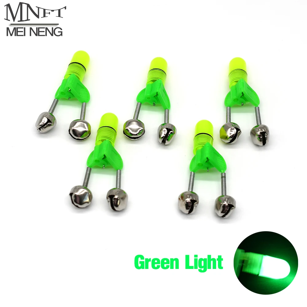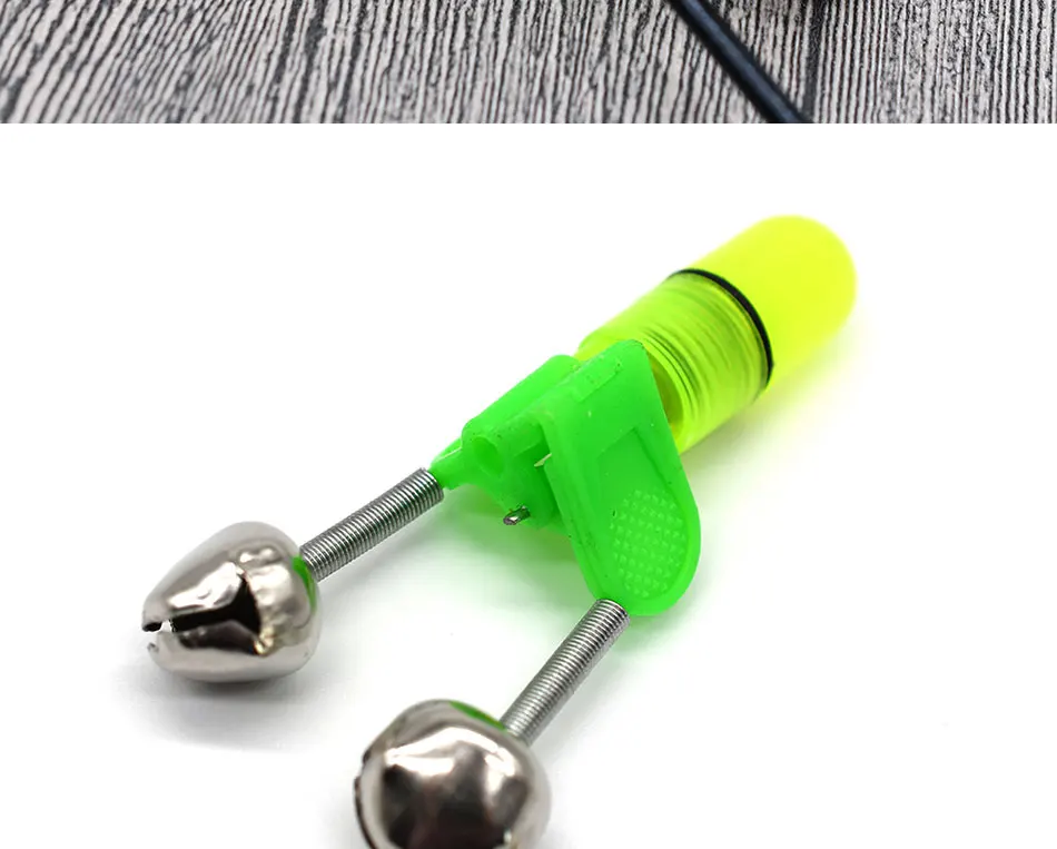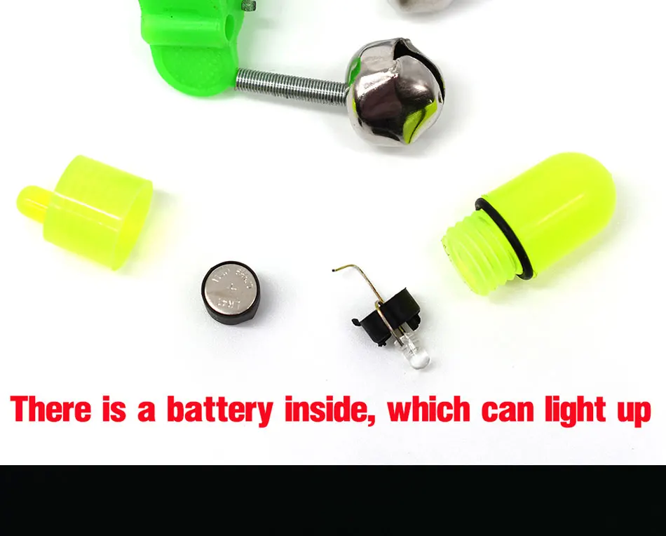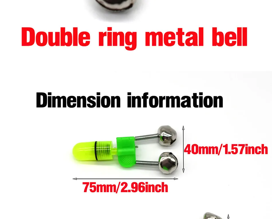 MNFT 5 juegos LED caña de pescar nocturna luz de alarma de cebo de mordida con anillo de campanas gemelas indicador de alarma de mordedura de pesca en caña de pescar