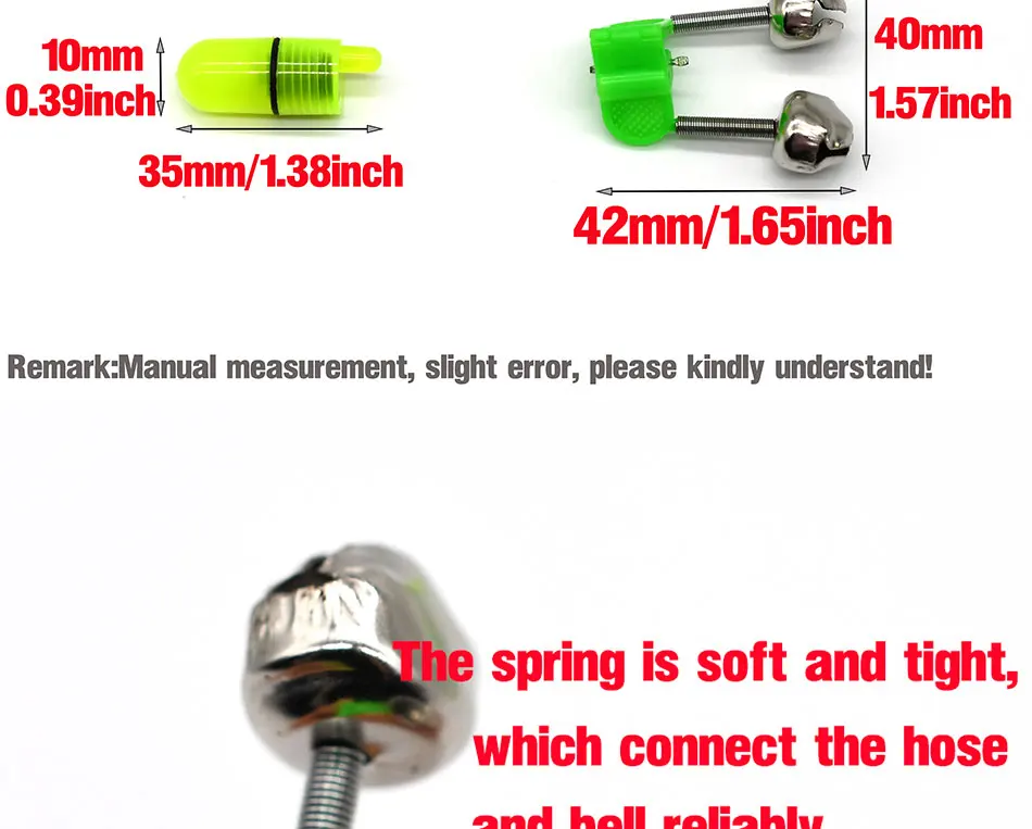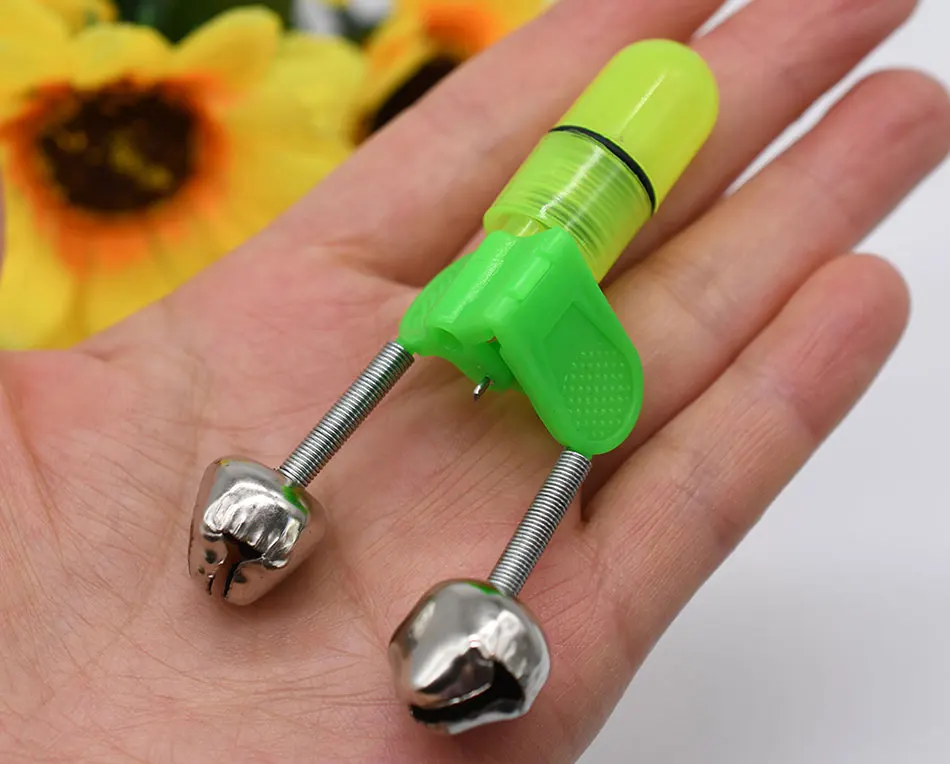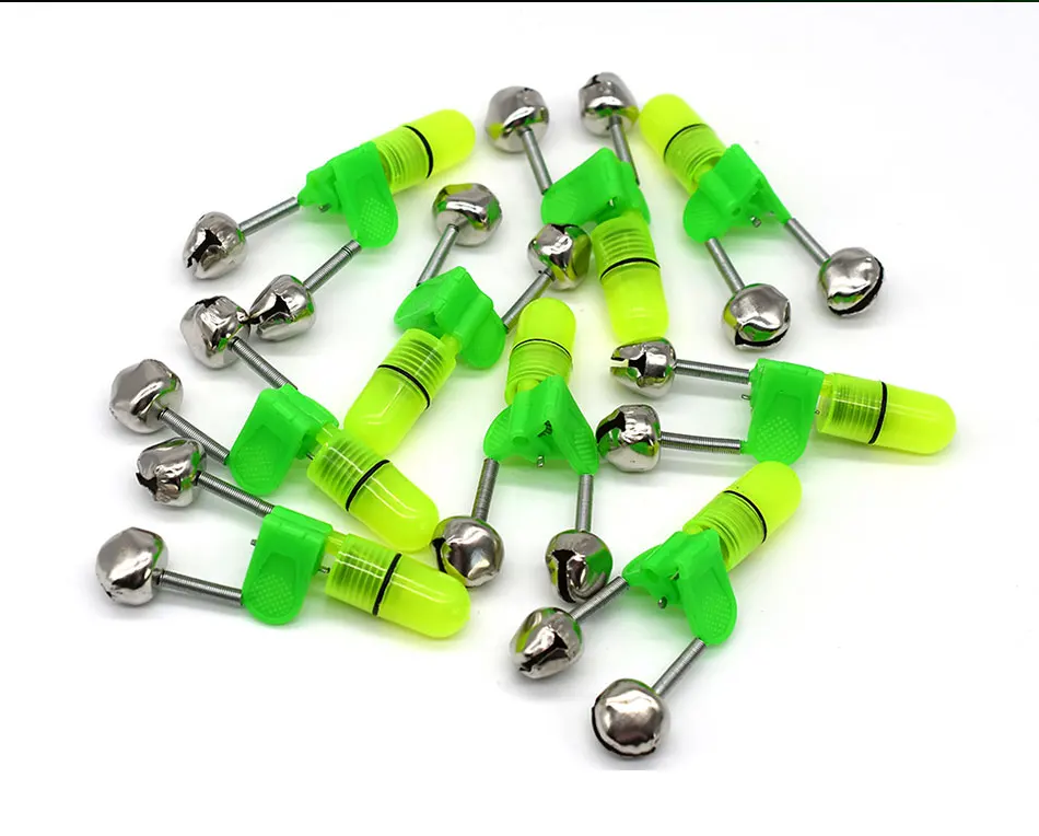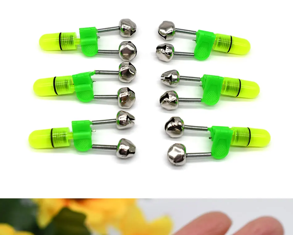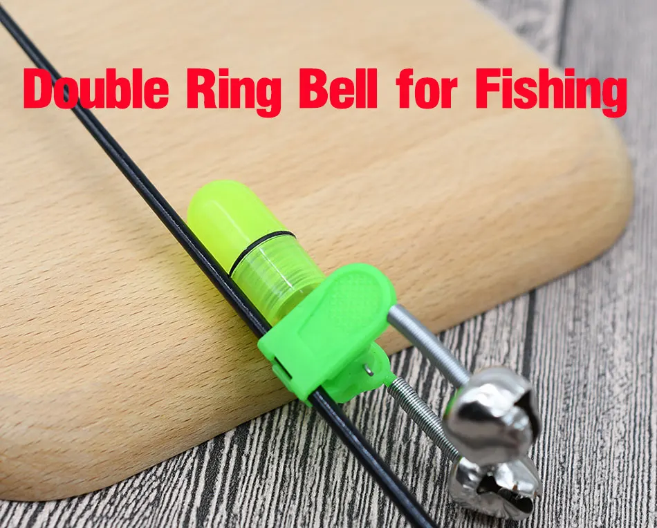 MNFT 5 juegos LED caña de pescar nocturna luz de alarma de cebo de mordida con anillo de campanas gemelas indicador de alarma de mordedura de pesca en caña de pescar