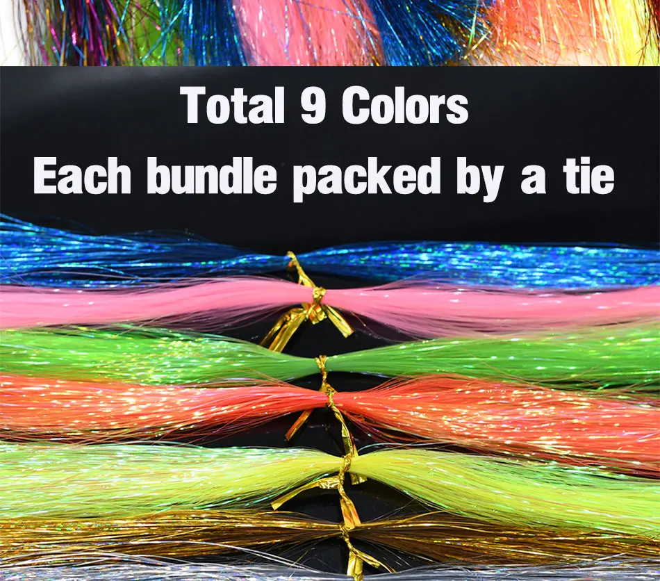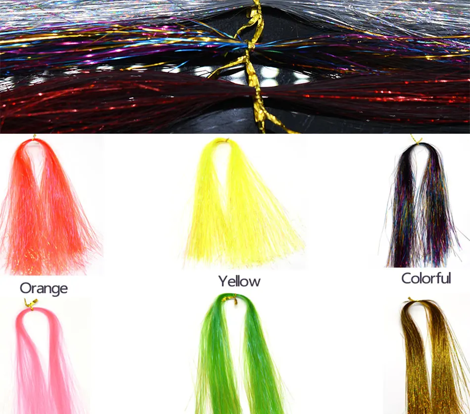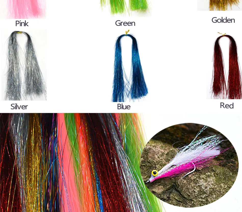 MNFT 5 paquetes de oropel Flash de cristal colorido Flashabou atado de moscas Material cebo fabricación de señuelos