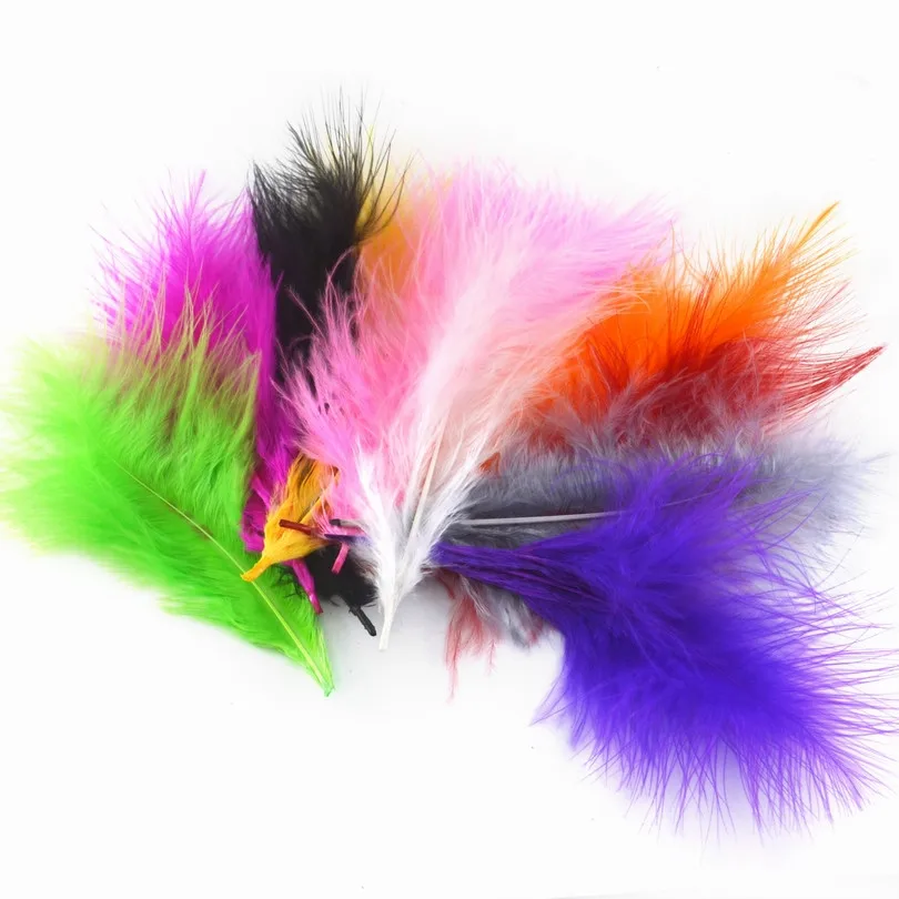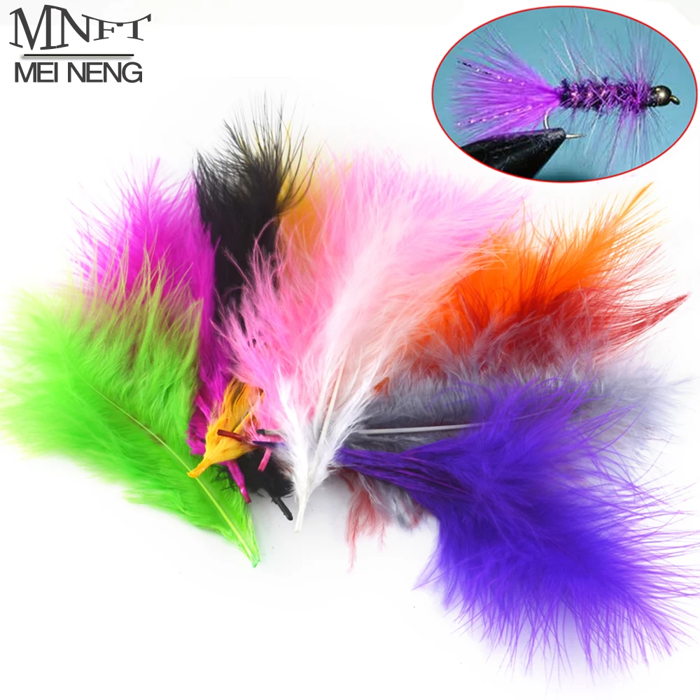 MNFT 50 Uds. Pluma de Bugger de marabú de pavo de varios colores para atado de moscas Material señuelo fabricación de cebo blanco púrpura rosa negro gris Etc.