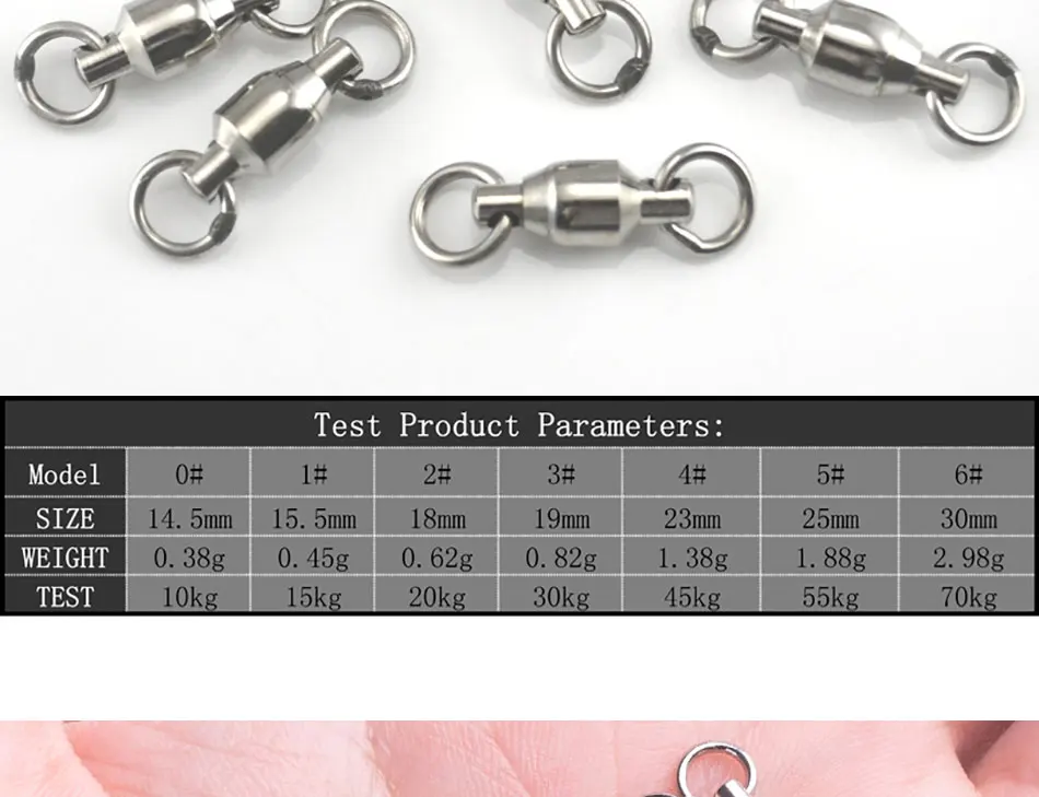 Descripción del producto:Tamaño: 0#,1#,2#,3#,4#,5#,6#Color: plataParámetros del producto de prueba:Modelo: 0#1#2#3#4#5#6#7#8#Tamaño: 14,5 mm, 155 mm, 18 mm, 19 mm, 23 mm, 25 mm, 30 mm.Peso: 0,38 g 0,45 g 0,62 g 0,82 g 1,38 g 1,88 g 2,98 gPrueba: 10kg15kg20kg30kg45kg55kg70kgComponentes incluidos:Cantidad: 50 unids/lote