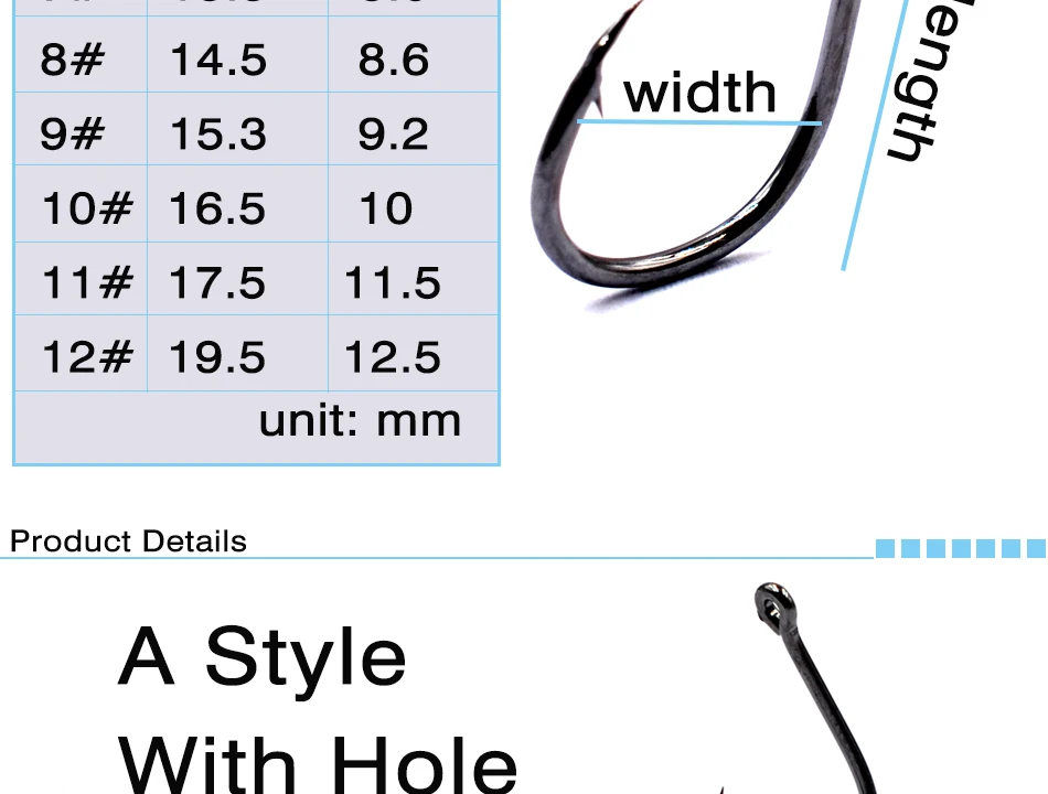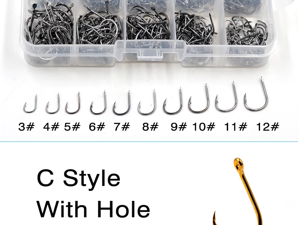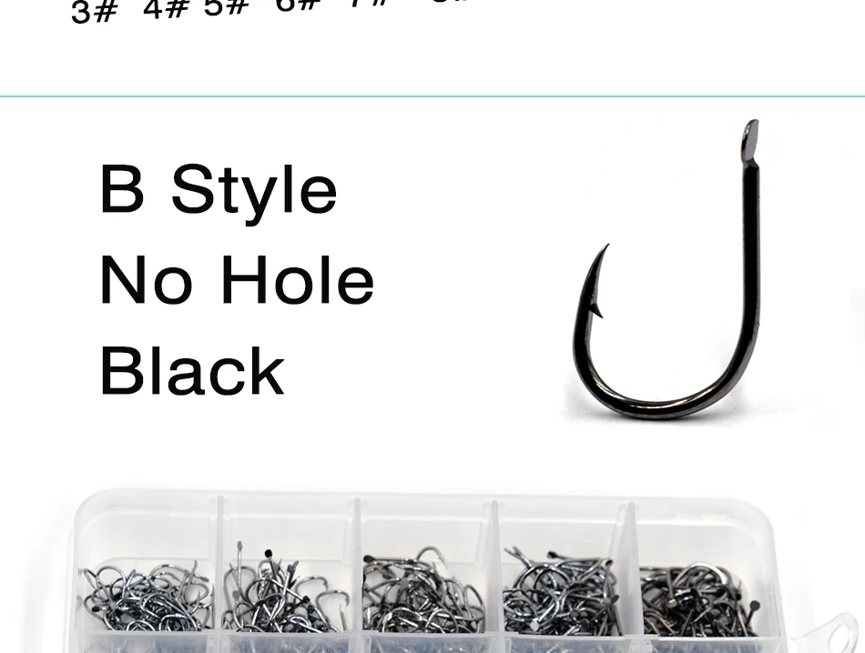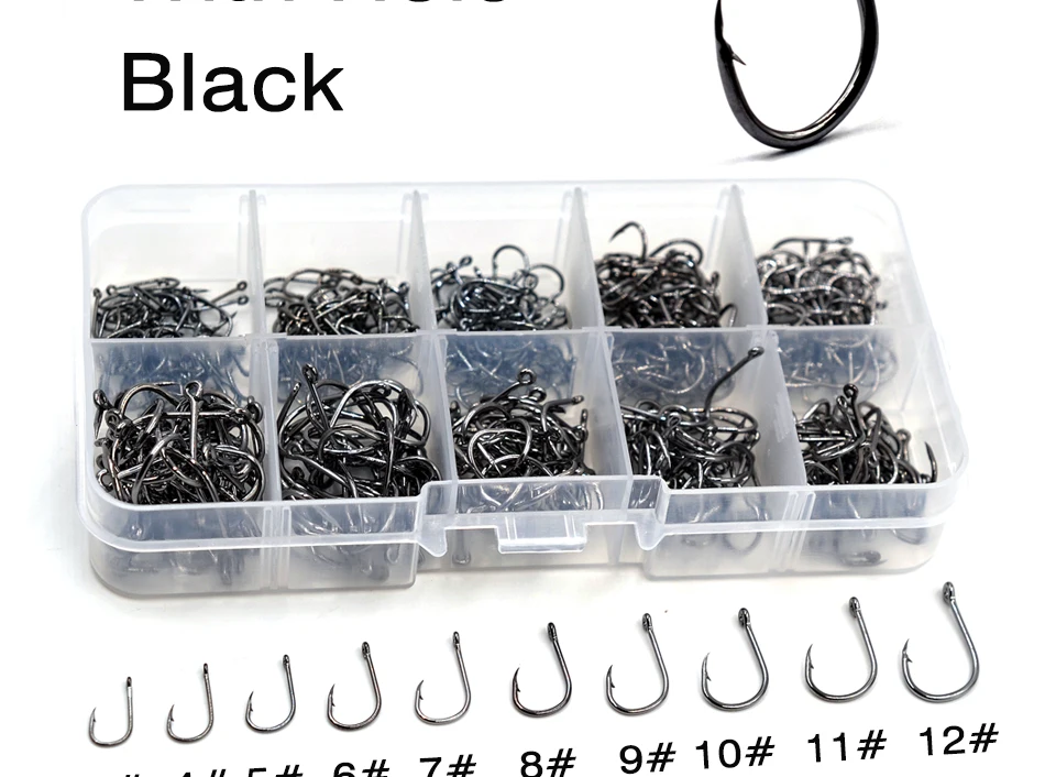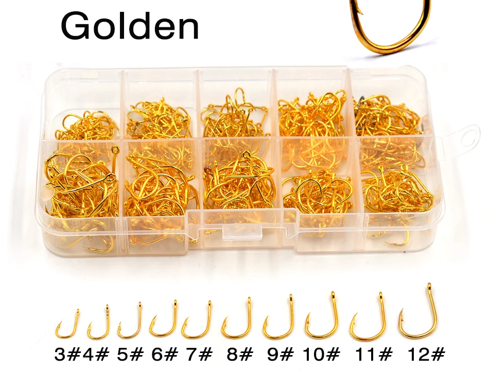 Descripción del productoFabricado en acero con alto contenido de carbono, con alta resistencia y resistencia a la corrosión, apto para agua dulce y salada.Los anzuelos de pesca son realmente afilados con un diseño especial de anzuelos de púas, para una menor tasa de mortalidad.EspecificacionesMaterial: acero rico en carbonoColor: negro o dorado.Longitud de los ganchos: aproximadamente de 1cm a 2cm.Cantidad de tamaño#3---60 piezas#4---60 piezas#5---60 piezas#6---60 piezas#7---60 piezas#8---40 piezas#9---40 piezas#10---40 piezas#11---40 piezas#12---40 piezasTamaño de la caja: 13,3 cm x 7 cmPeso: alrededor de 90 gComponentes incluidosTamaño 3-7: 60 piezas, tamaño 8-12: 40 piezas, total 500 piezas en una caja.