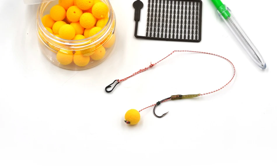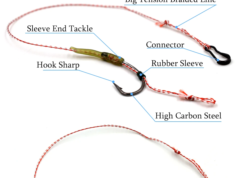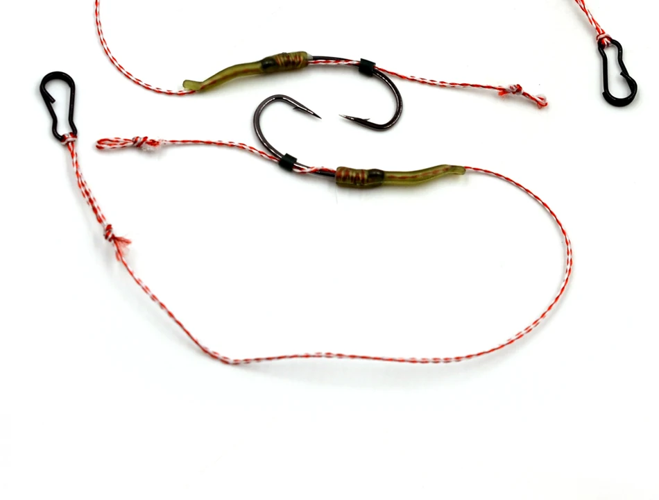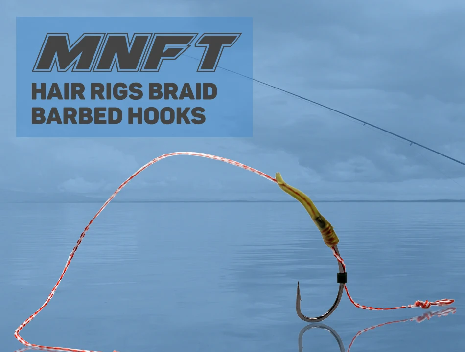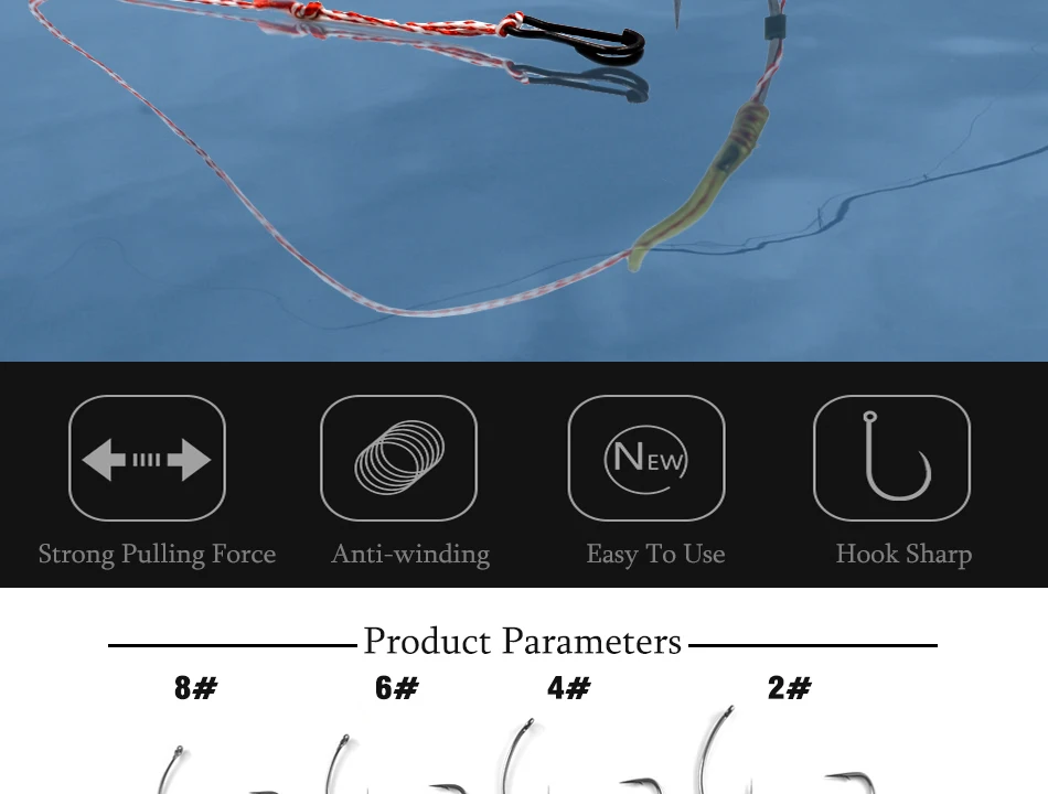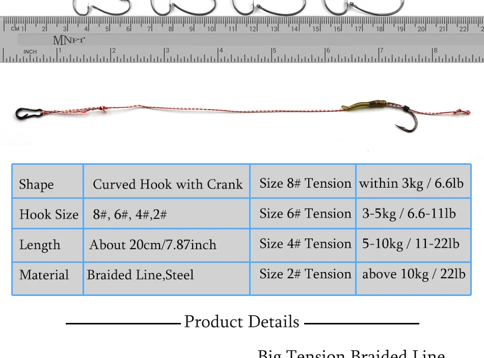 MNFT 6 Juego de ganchos curvos 2-8 # Surtido de hilos trenzados, anzuelos de pesca de carpa atados a mano, aparejos de pelo, conector de pesca listo para usar