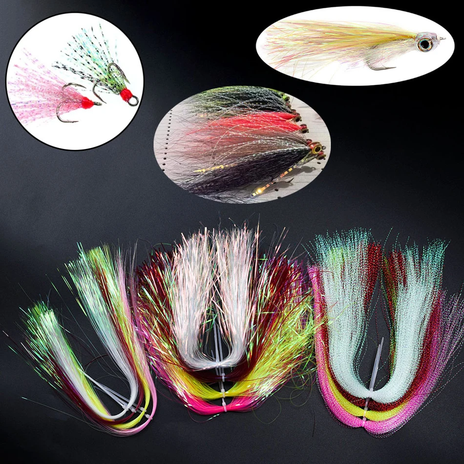 MNFT 6 paquetes Flashabou Crystal Krystal Flash String para atado de moscas Jig señuelo de pesca efecto ondulado pesca con mosca de agua dulce y salada