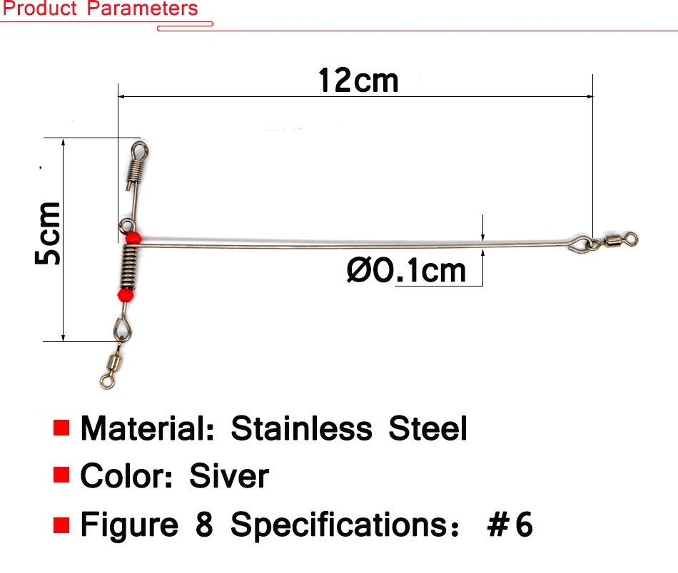 MNFT 6 uds aparejos de pesca señuelo equilibrio herramientas de pesca en forma de T triángulo rodante con conector de pesca de equilibrio de cuentas giratorias y a presión