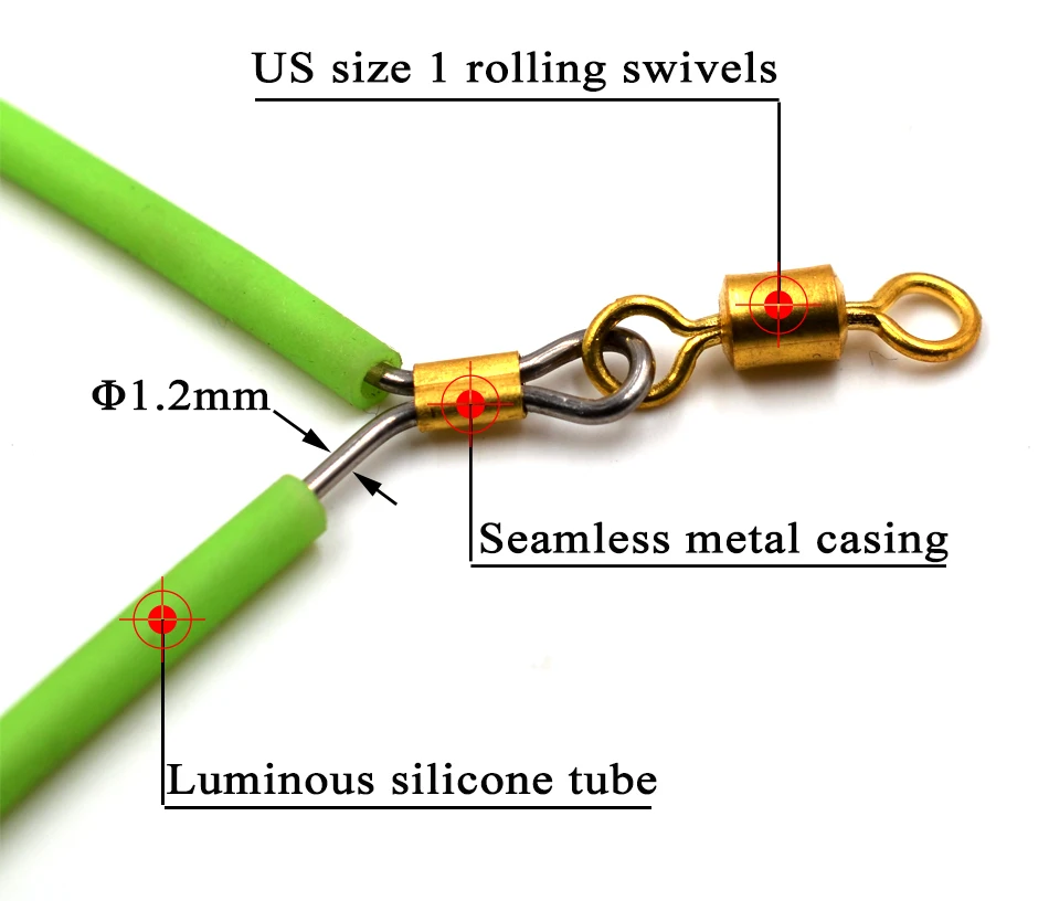 MNFT 6 uds. De pelotas luminosas de acero inoxidable antienredos con gancho giratorio, suministros de conector de señuelo, aparejos de pesca de mar/barco