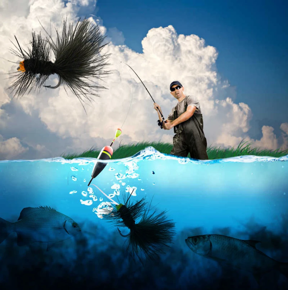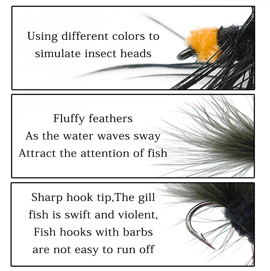 MNFT, 6 uds., serpentinas de lana para insectos, señuelos para moscas de pesca, anzuelo para atar moscas de agua salada, cebo para moscas de trucha