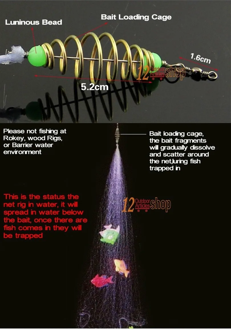 MNFT 6 unids/lote, nuevo diseño, aparejo de red de pesca con jaula de cebo de resorte, aparejo de pesca sin anzuelo, señuelo de innovación, aparejos de pesca al por mayor