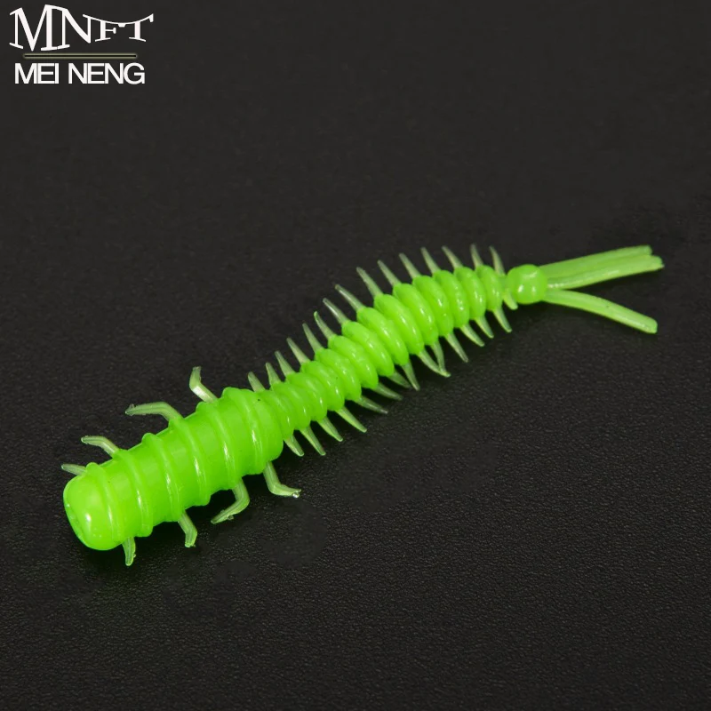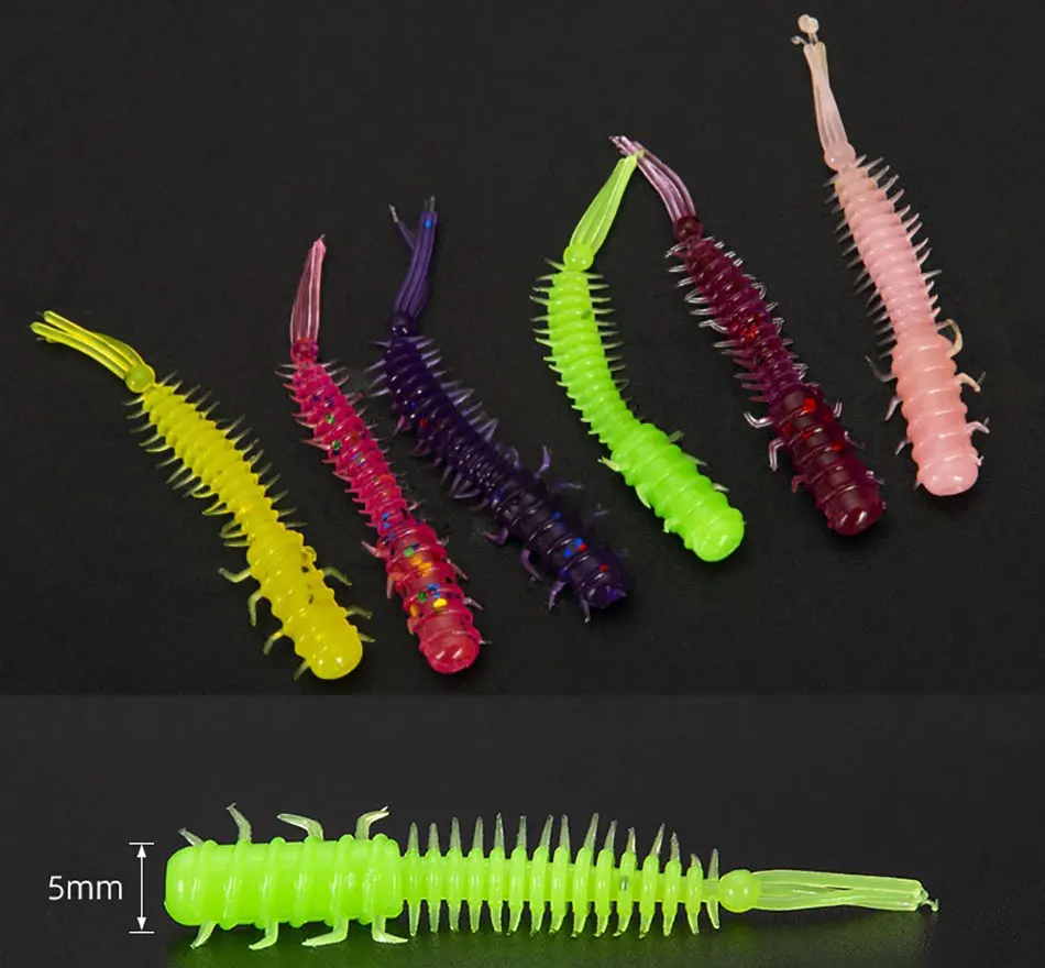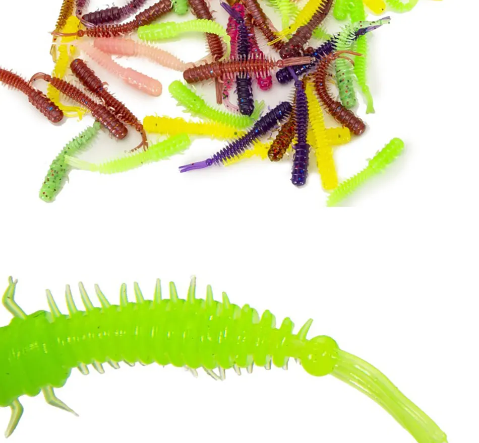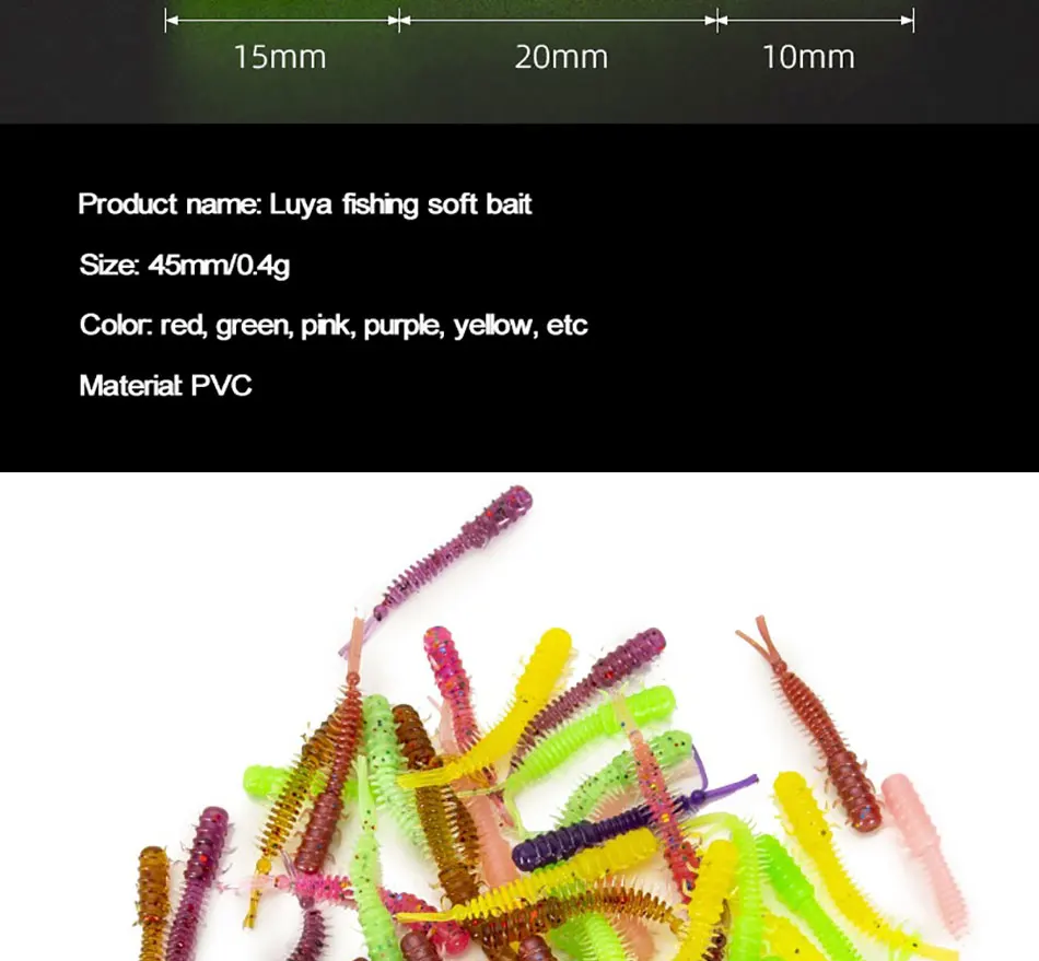 MNFT 60 uds 45mm/0,4g Luya cebo de pesca suave PVC raíz pez cebo 3 colas espiral multicolor Slug cebo