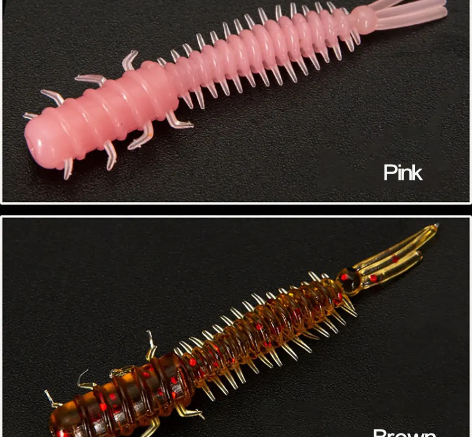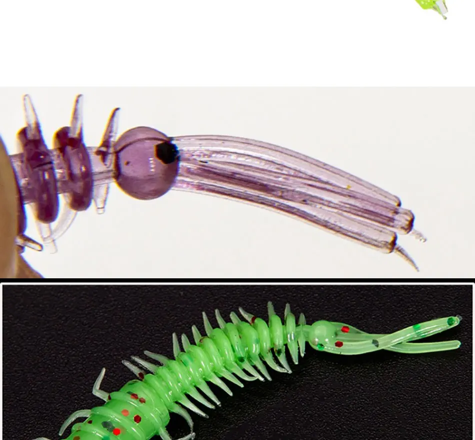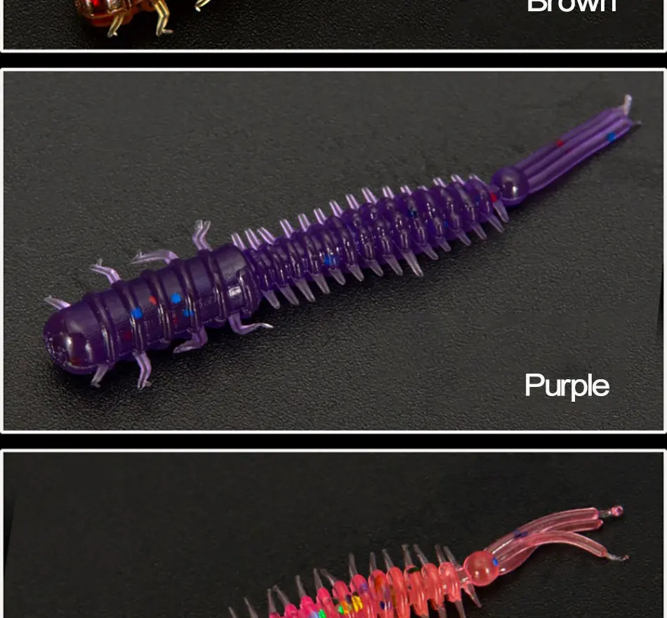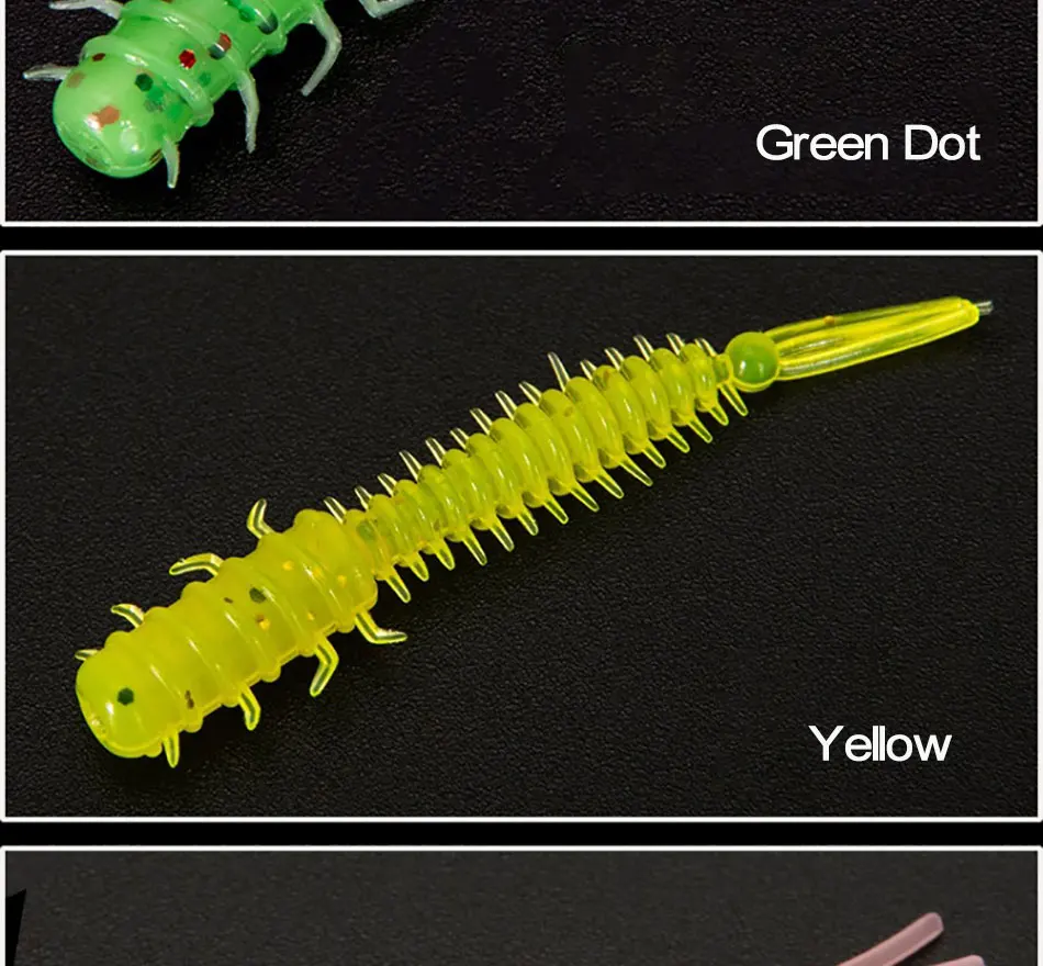MNFT 60 uds 45mm/0,4g Luya cebo de pesca suave PVC raíz pez cebo 3 colas espiral multicolor Slug cebo