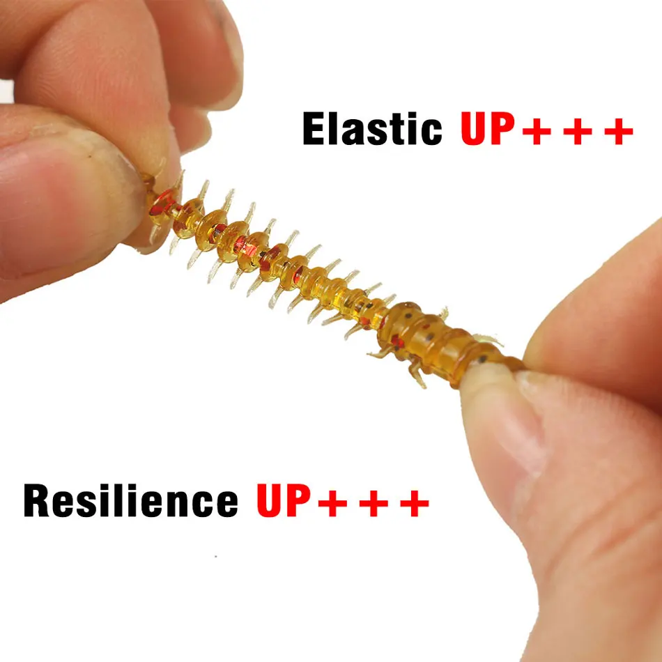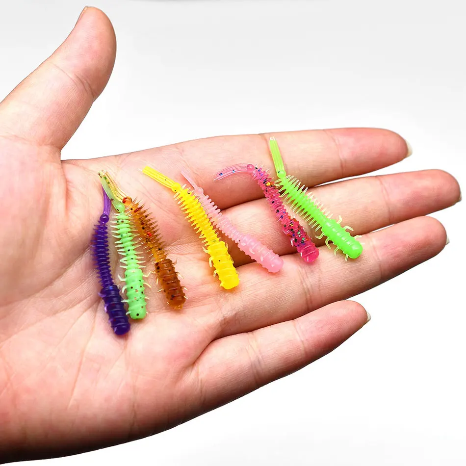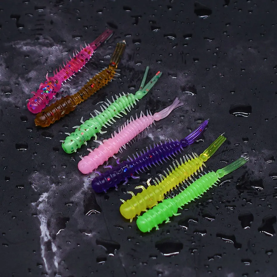 MNFT 60 uds 45mm/0,4g Luya señuelo de pesca suave raíz de PVC cebo de pez espiral de 3 colas cebo de babosa multicolor