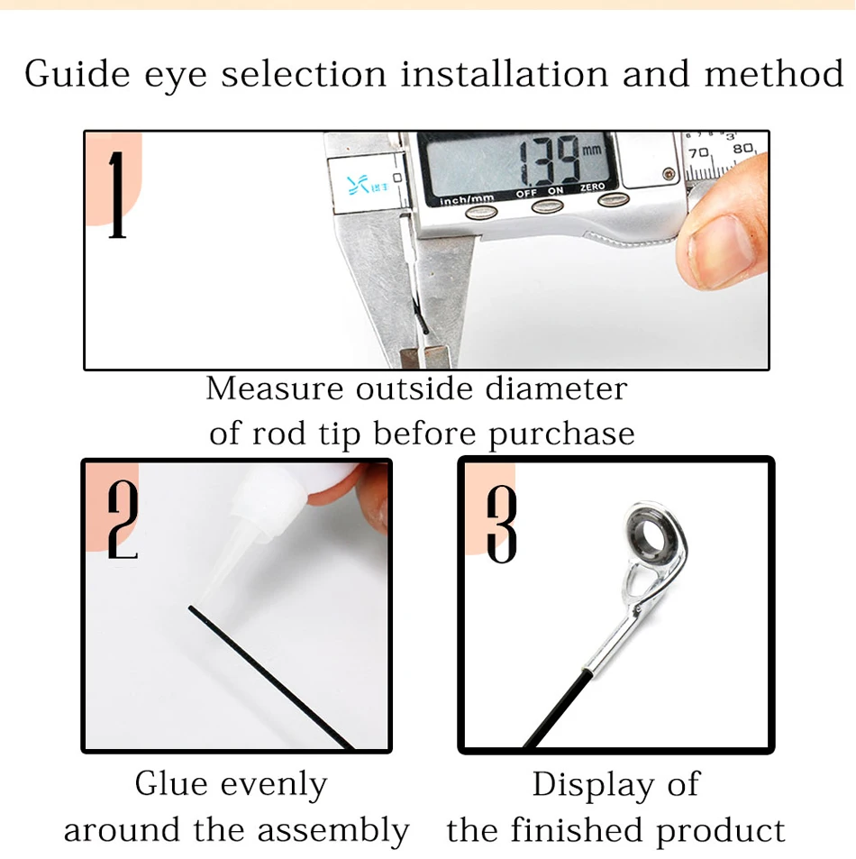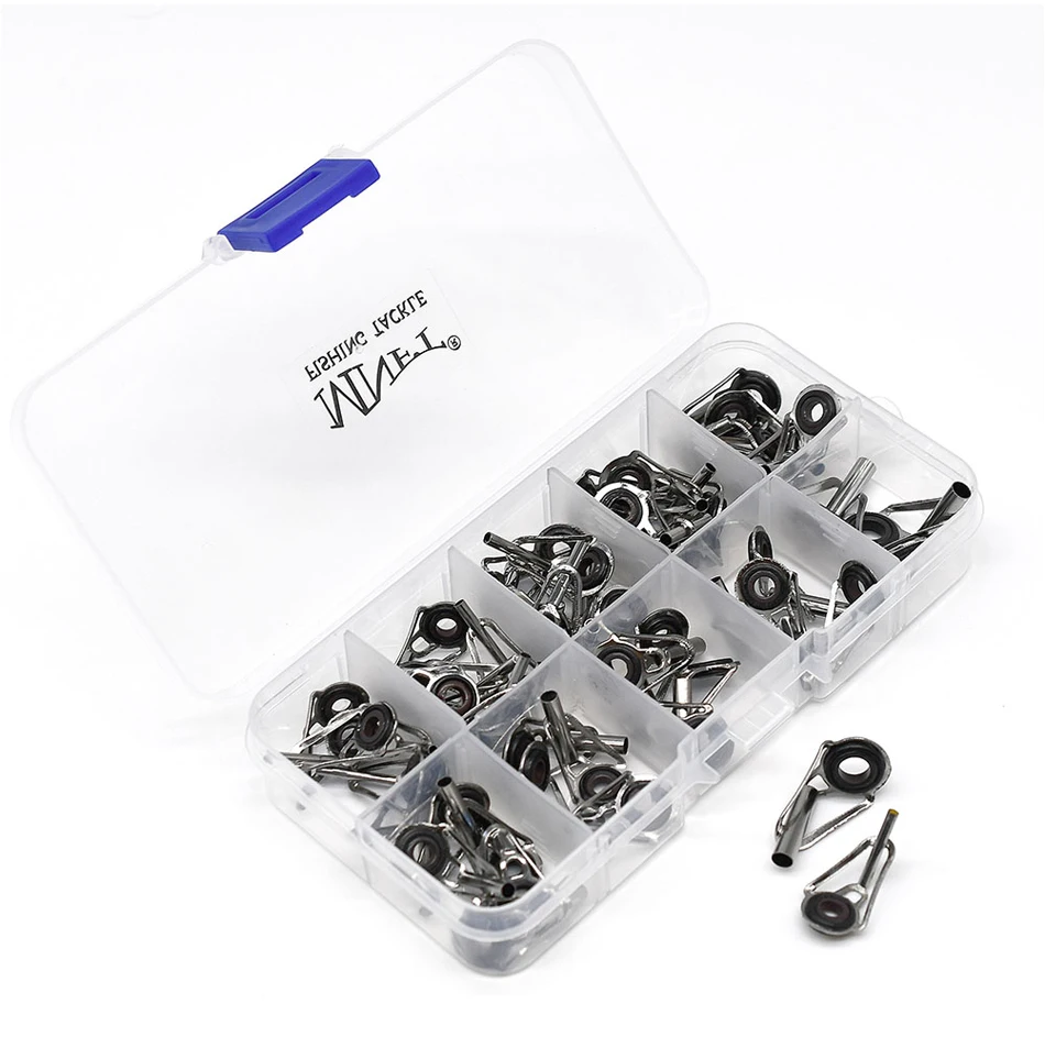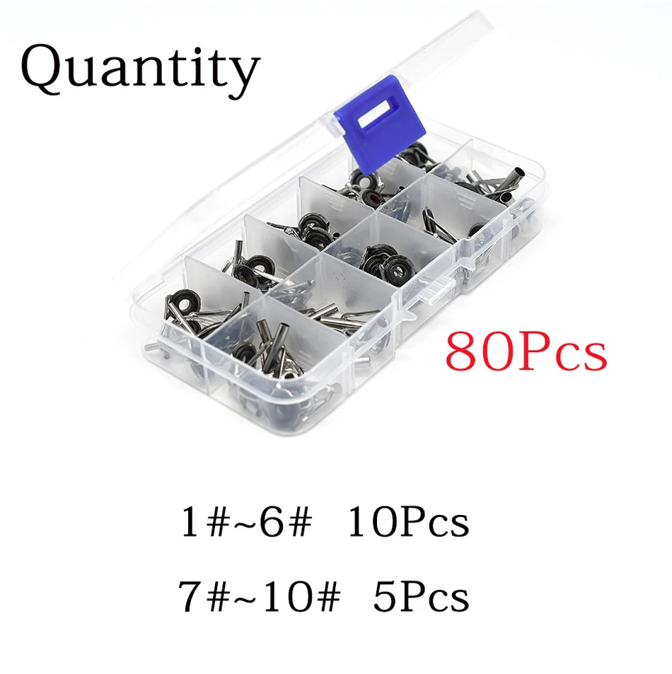 MNFT 80PCS Kit de reparación de ojos de punta de caña de pescar Punta de varilla guía de anillo de cerámica de acero inoxidable