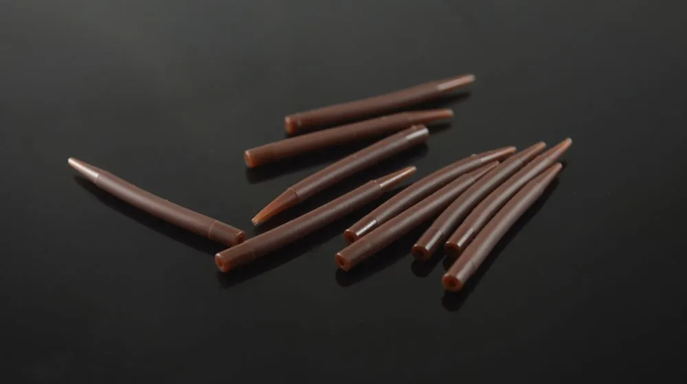 MNFT-accesorios de pesca de carpa, Clips de plomo seguros y conos de cola de goma, línea de Color marrón, mangas de gancho, aparejo de pelo, pesca en el lago, 10 Uds.