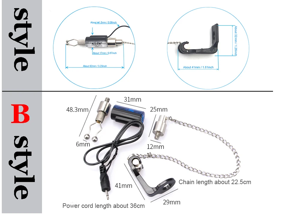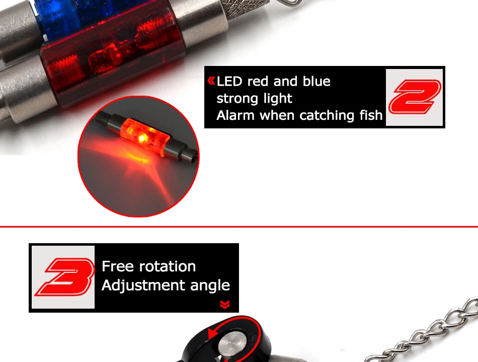 MNFT-alarma de mordedura de pesca, colgador de cadena, indicador de carpa, campana de mordedura, luz LED, punta de caña, indicador de pesca, alarma de enchufe estándar de 2,5mm, 1 Uds.