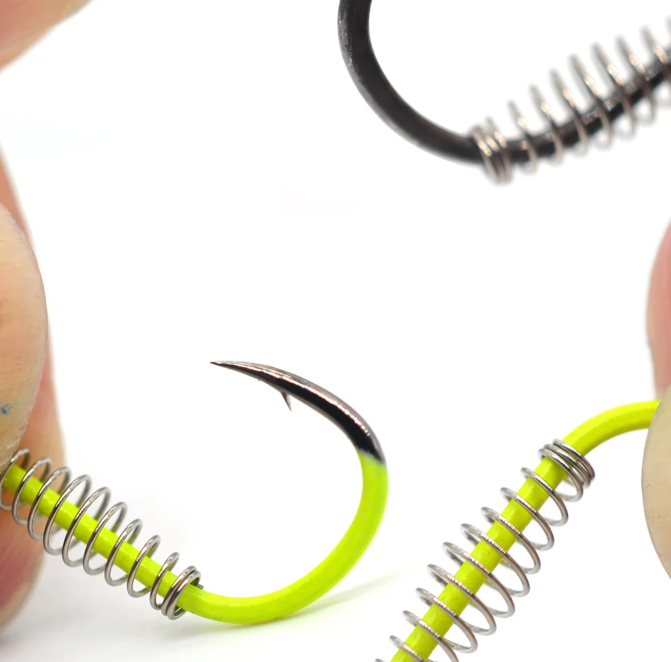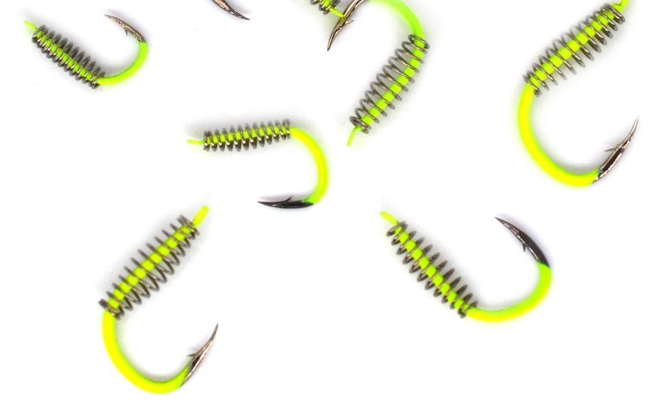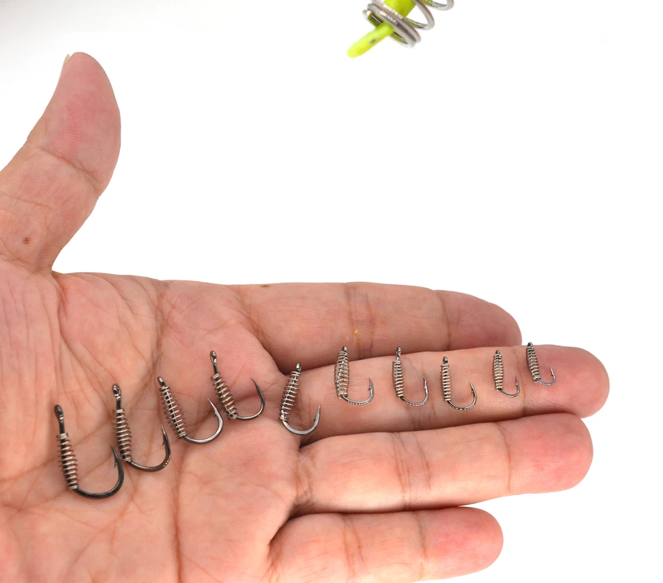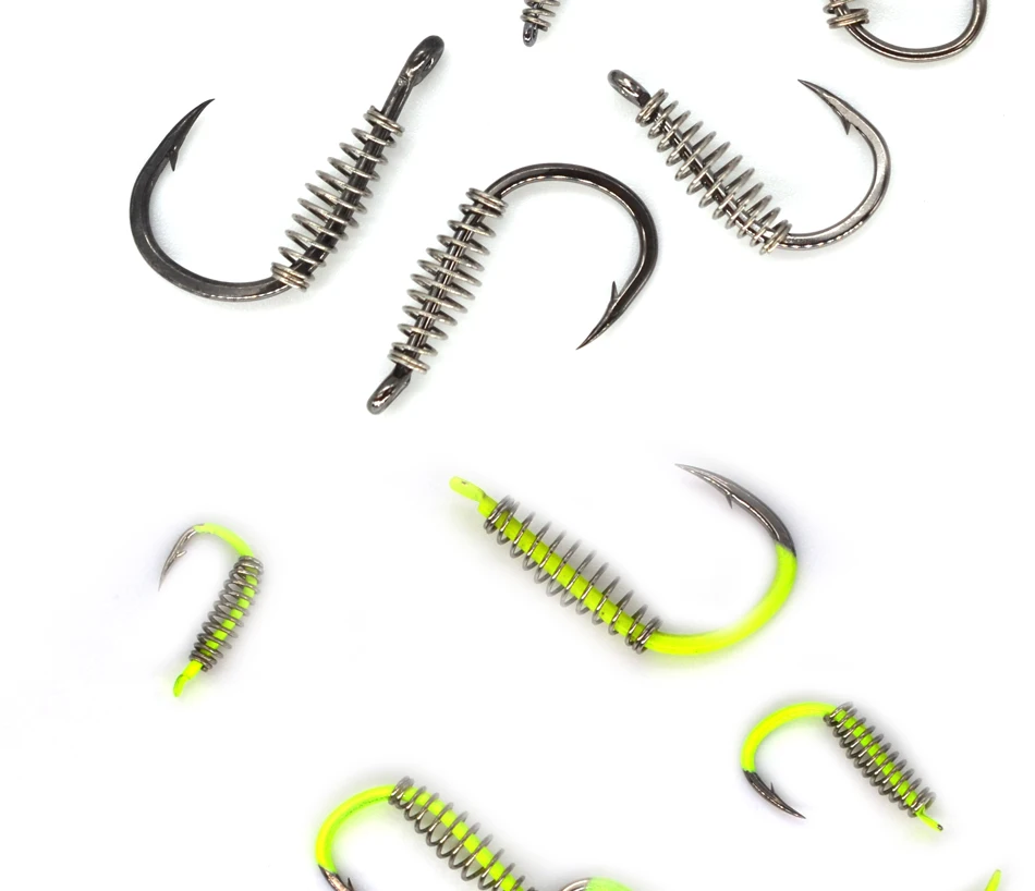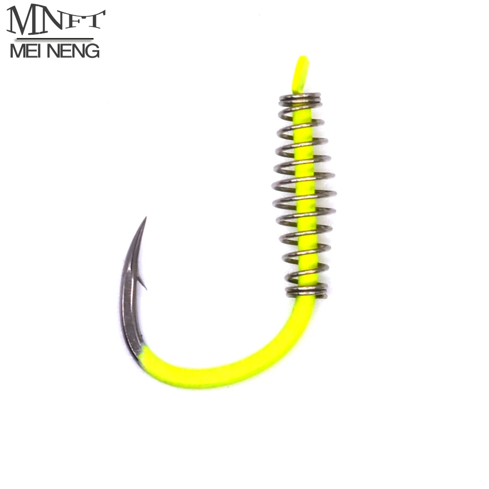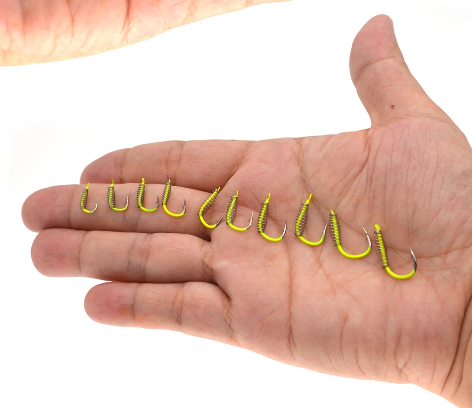 MNFT-anzuelo de pesca de 40 piezas, gancho de resorte de pesca de Color amarillo y acero fluorescente, con púas, círculo giratorio, para carpa, 3-12 #