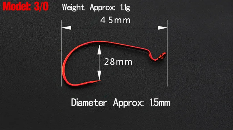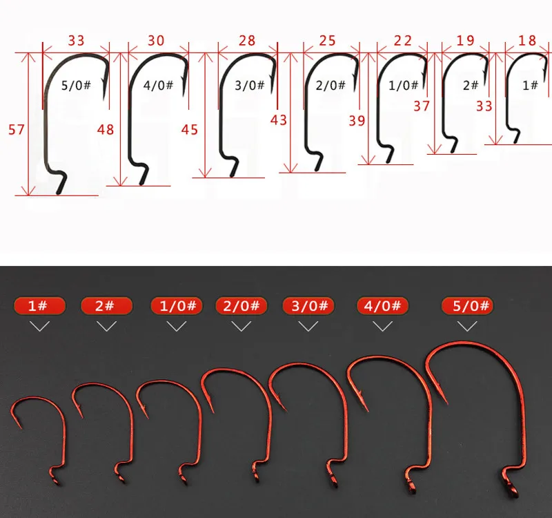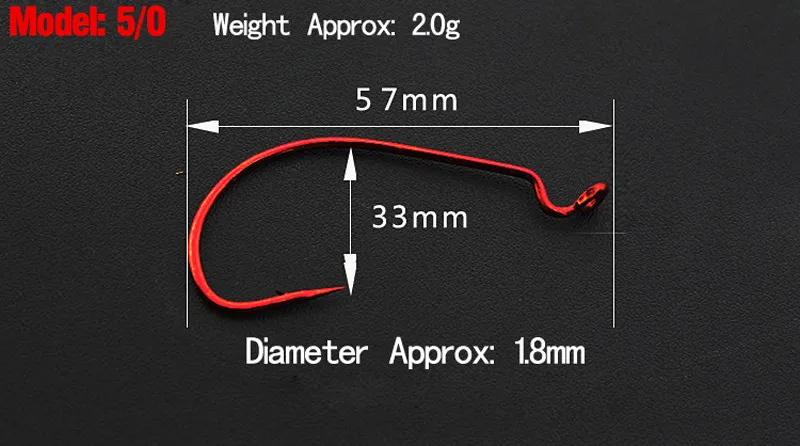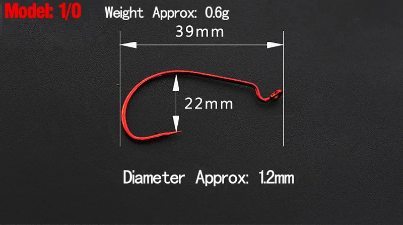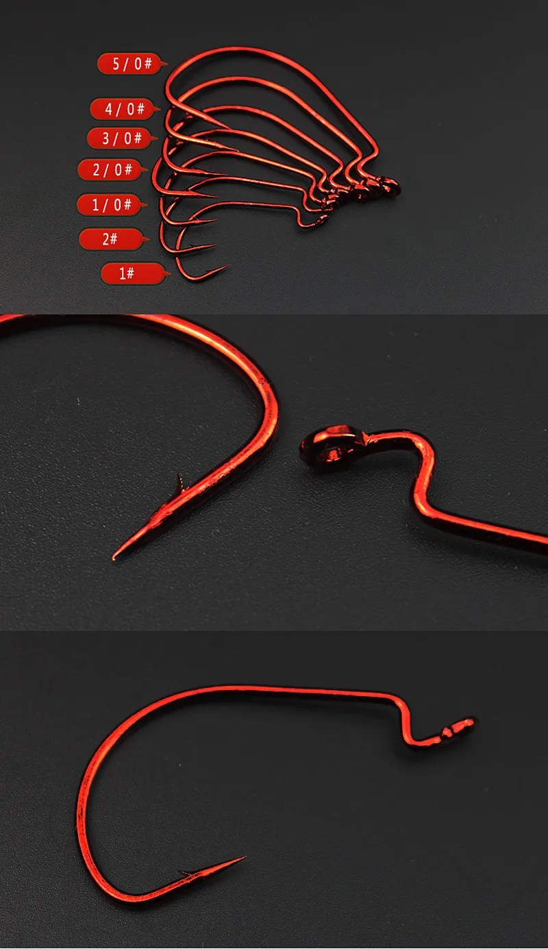 MNFT-anzuelo de pesca de Color rojo sangriento, gancho de gusano Offset, manivela de vientre ancho para lubina, cebo blando, piezas del grupo Texas, 100 unidades por lote
