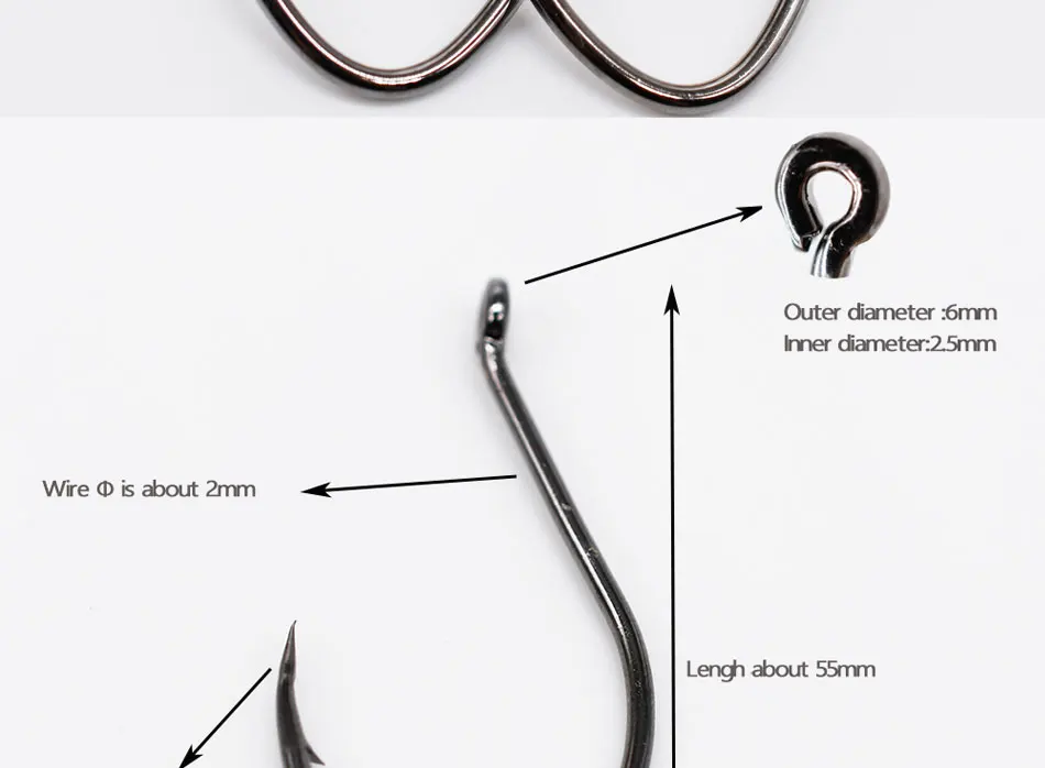 MNFT-anzuelo de pesca grande de Mar de alta calidad, tamaño de anzuelo de agua salada, 5,5x2,8 cm, acero al carbono afilado, aparejos de anzuelo de pesca de bagre, 10 Uds.