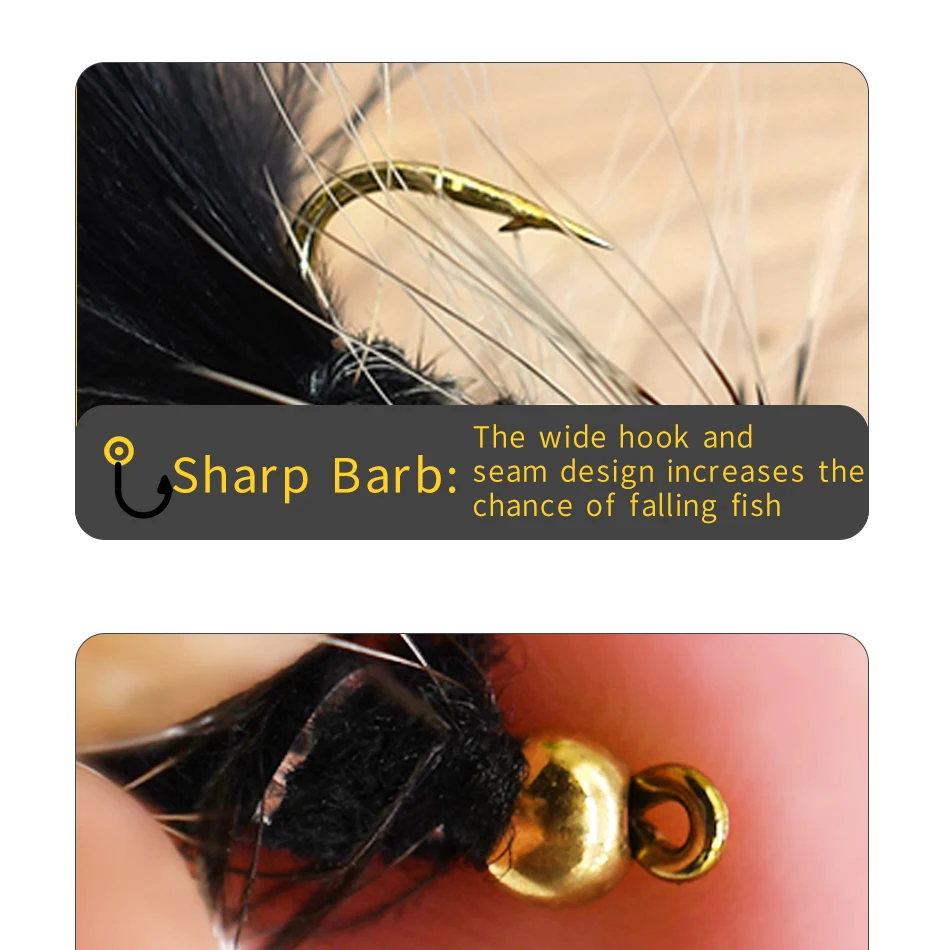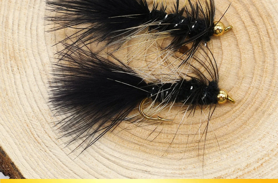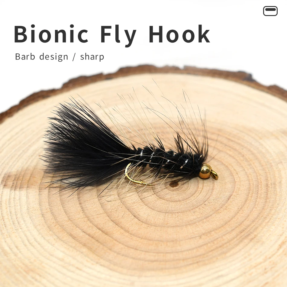 MNFT-anzuelos de pesca de Ninfa, 10 #, 10 piezas, Beadhead, golled, barbas blancas, caña larga, atado de moscas