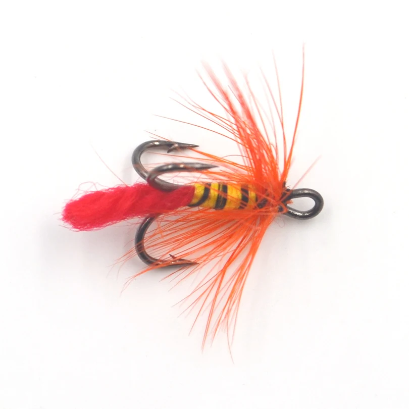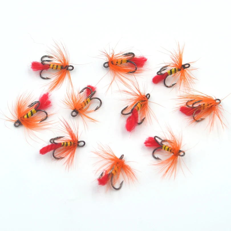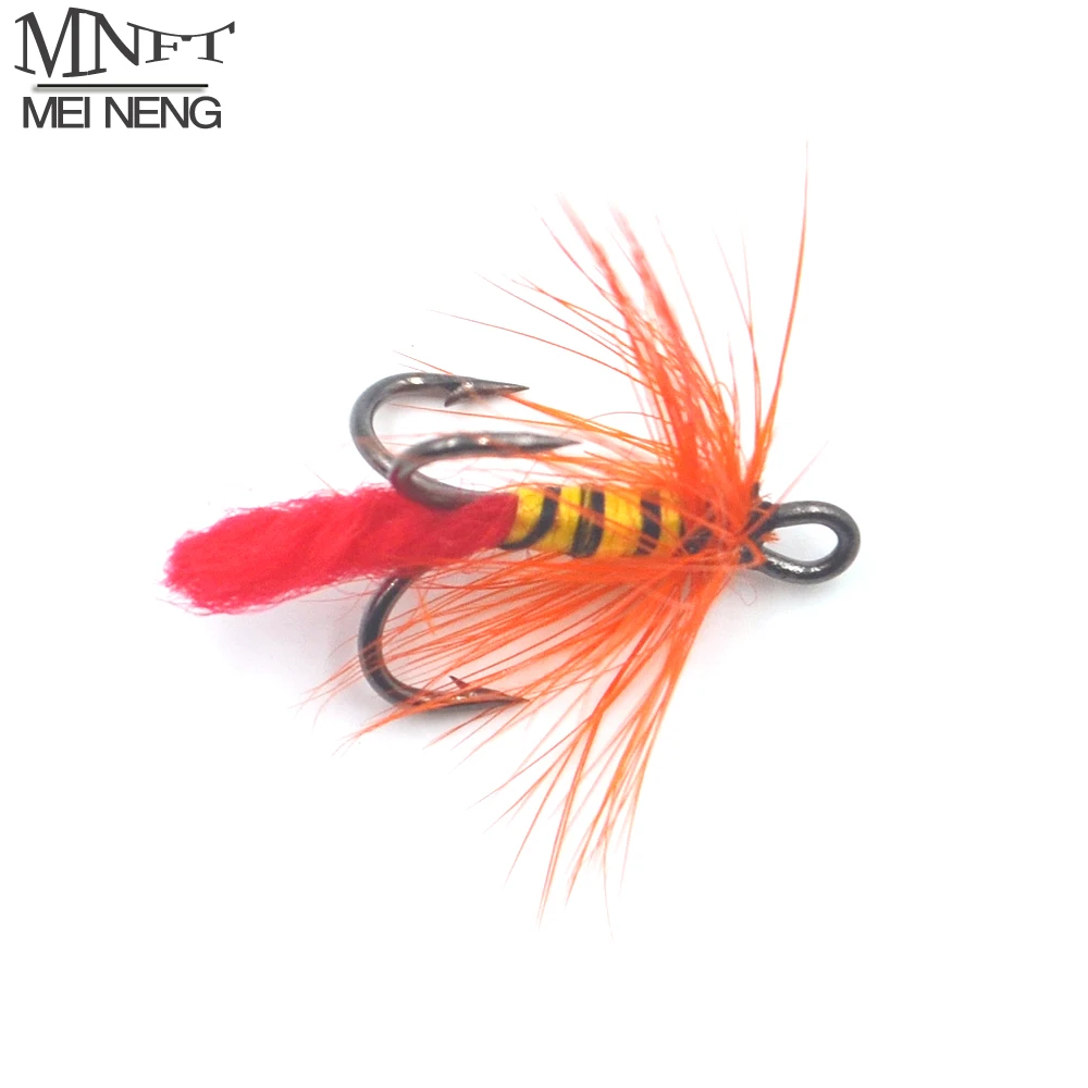 MNFT-anzuelos triples 3x triples para pesca con mosca, anzuelos de tres moscas, señuelo naranja, Barba, cebra negra, cuerpo amarillo, 10 unids/lote por caja