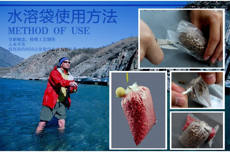 MNFT-bolsa de pesca de carpa PVA, cebo de pesca, soluble disuelto rápido, Ideales para pesca sin residuos, tres tamaños, 10 unids/lote