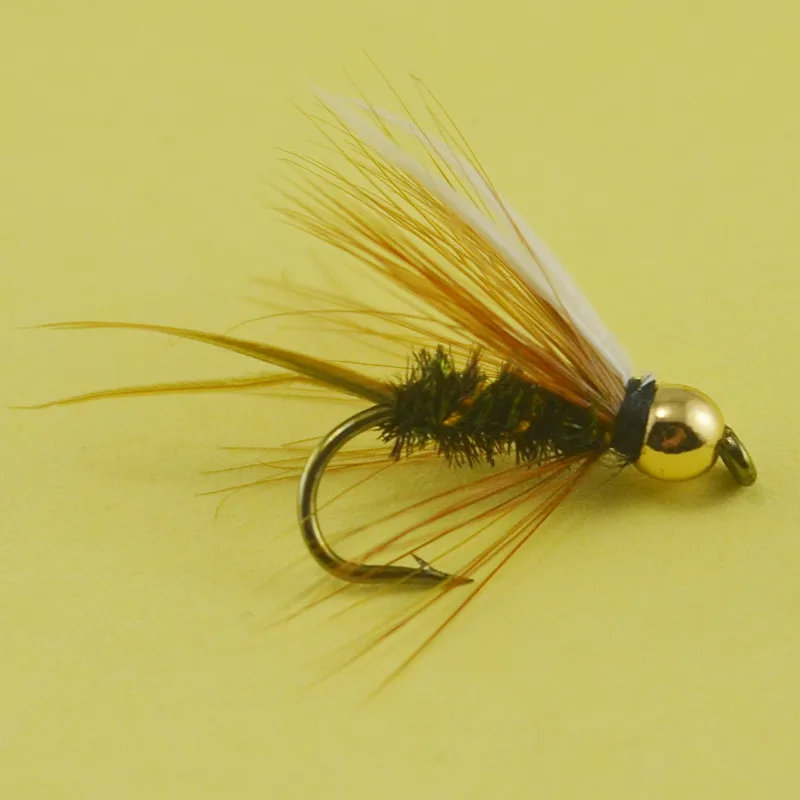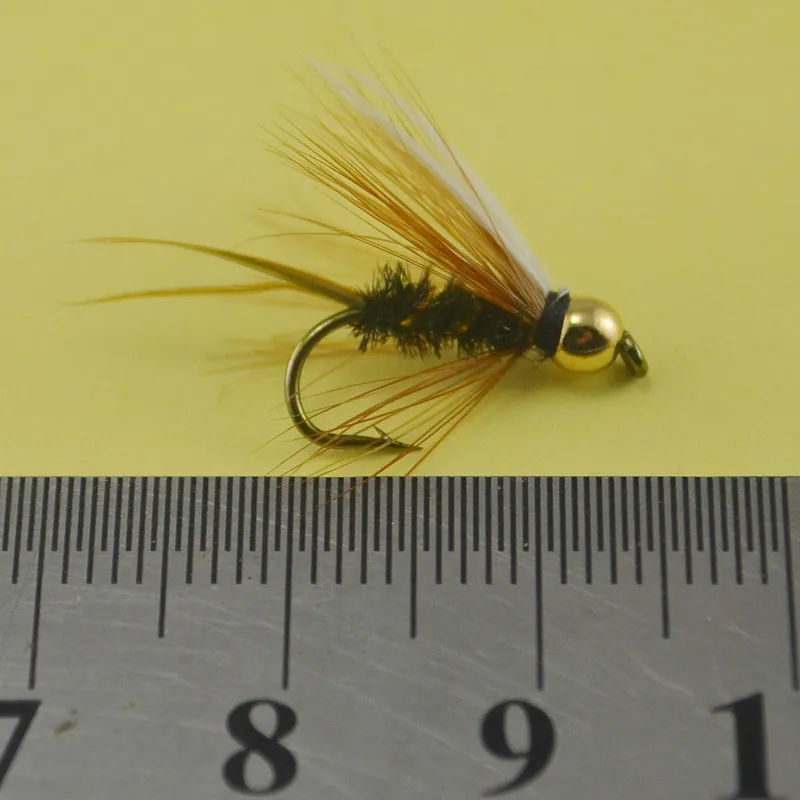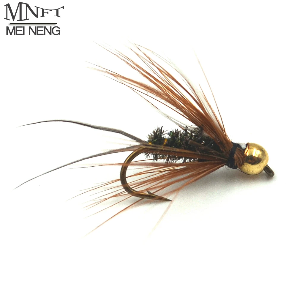MNFT-cabeza dorada de latón, trucha, pesca en gris, moscas, mosca húmeda, cuentas, príncipe, ninfa, 10 piezas. ° 10